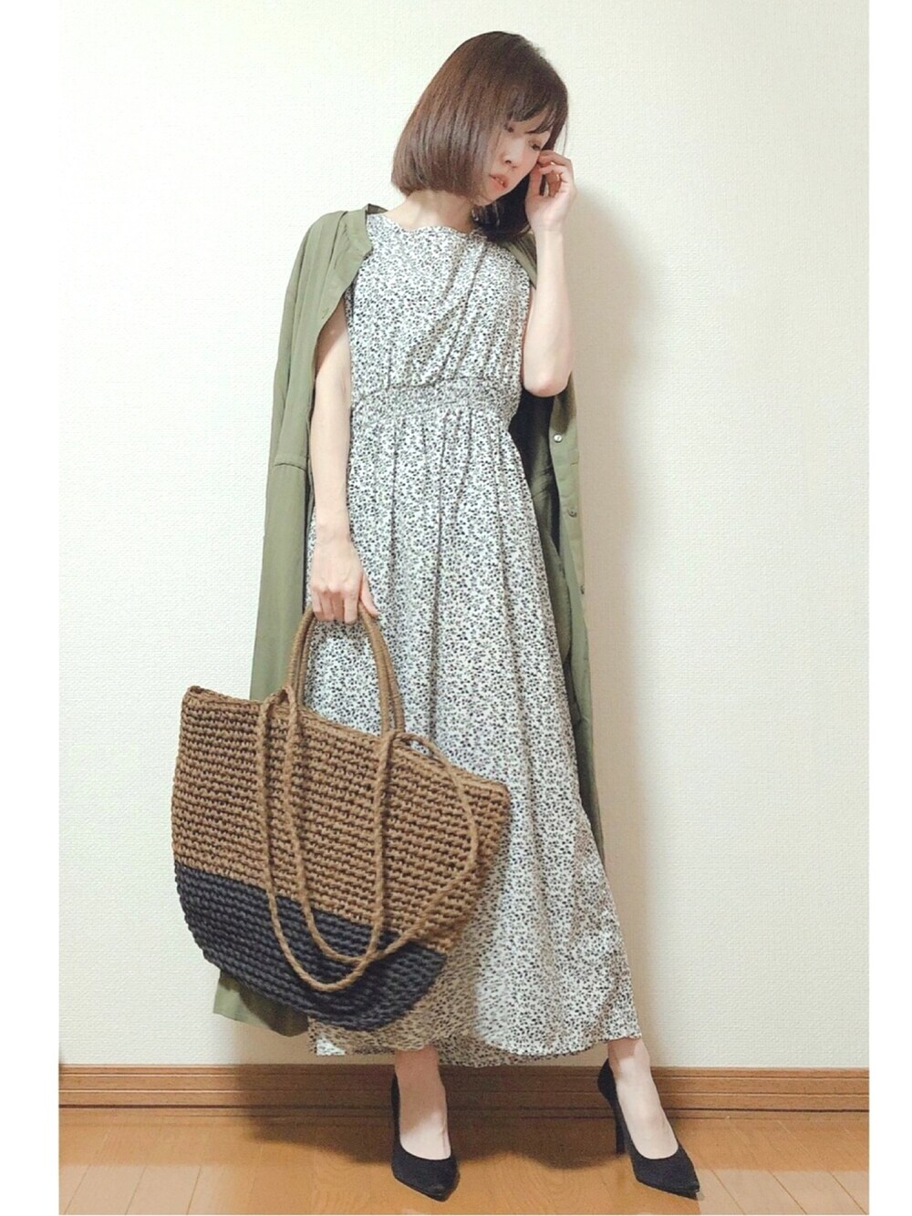 EKO *えこのワンピース「リーフ柄ロングワンピース」を使ったコーディネート