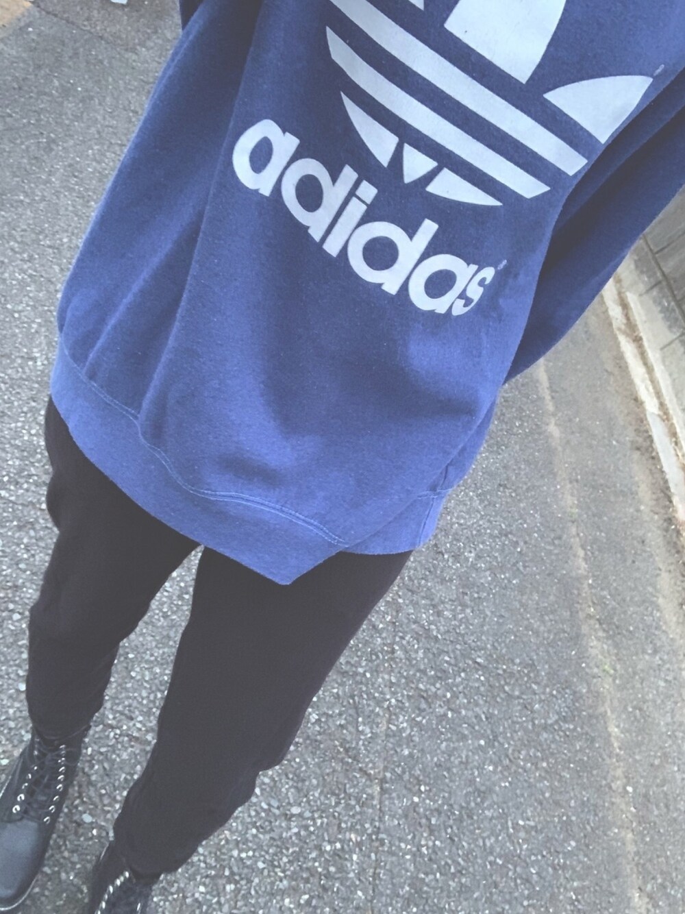 adidasのパーカーは直輸入のお店で 何年か前に購入したお気に入り🙆🏻‍♀️ ユニクロのスウェットパンツと ENVYMのブーツを合わせてラフに