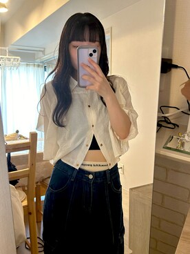 「sheinのアイテム(デニムパンツ、ブルー系)」を使った、えくぼさん(レディース)の夏コーディネート