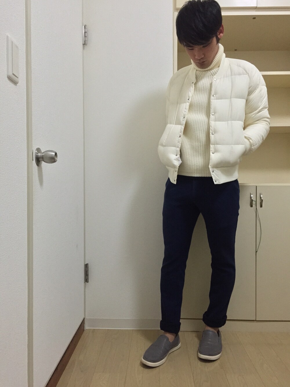 おはようございます(^ ^) 3連休最終日ですね。 もちろん、仕事です。笑 前回のタートルネックにMA-1風ダウンを合わせただけです。笑 明日かフェス始まりますよー!!