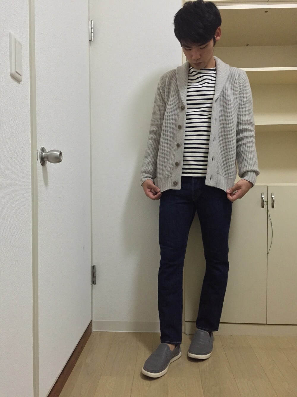 おはようございます(^ ^) チェスターフェスたのしかったー! 主催者様ありがとうございます( ^ω^ ) そして、今日はしましまーー 長い間愛用のカットソーのしましまにしましま。 間違えた、しましまにしましたw ショールカラーknit JKT×ボーダーです。
