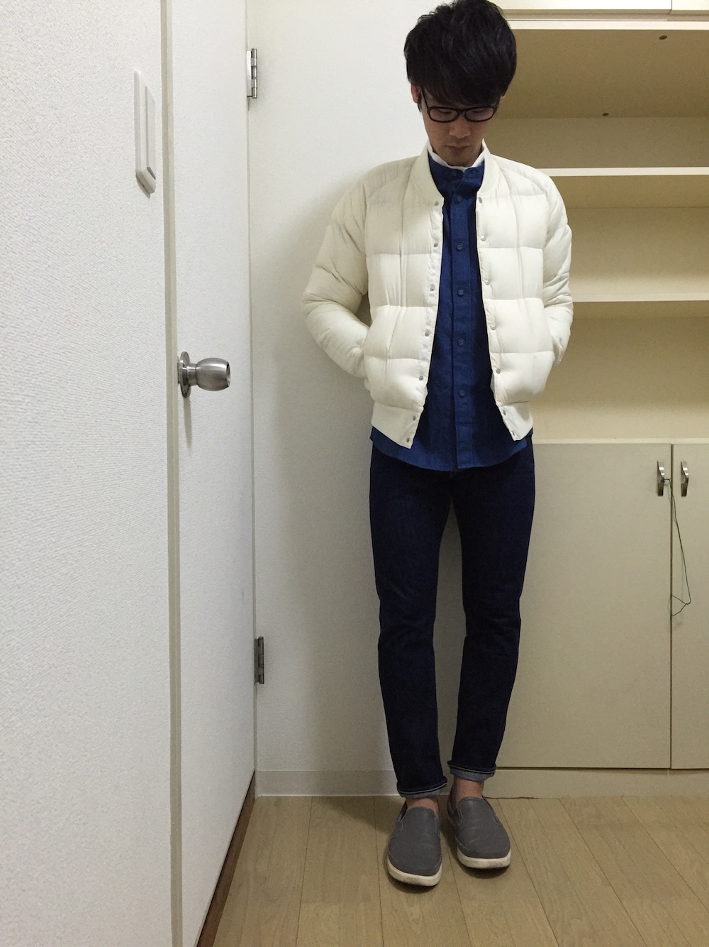 おはようございます(^ ^) また初売りセールの戦利品コーデです。 戦利品はデニムのバンドカラーシャツ(^ ^) 前から気になっていたけど、セールで安くなってたので即買いです!笑 モックネックでチラ見せも忘れずに。笑 あ、安心してください、、 本日はもっこりーしてません。笑 しててもシャツで隠せます( ̄ー ̄)w 皆さんのもっこりーコーデ見てみたい←何様 さて、今日の話題のメインはフォロワーさんの中でやられてる書き初めメーカーですが 一個もオモロないやん(−_−;)‼︎ 地味でメガネっ子って、ネクラなのか?w という事で、今日は眼鏡つけてみました。笑 枕を濡らすって、泣くのか?ww 運否天賦、、 意味:運は天に任せるのみ なるようになるってことかww まあ、元々楽観主義なのでいいや( ̄ー ̄)w こちらからは以上でーーす!!