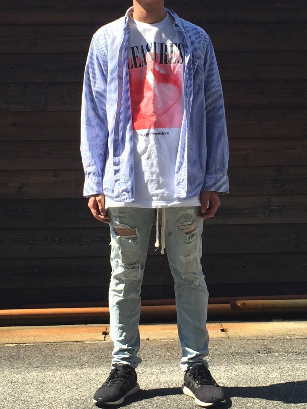 PLEASURESUNIQLOmnmladidasこの画像から似たアイテムを検索できます71419お気に入り (3)190justadaigakuseiさんへのコメントNO COMMENTコメントはスマートフォン用アプリからご利用できます着用アイテムPLEASURESPLEASURESTシャツ/カットソー (ホワイト系)Tシャツ/カットソー探すZOZOTOWNで探すUNIQLOUNIQLOシャツ/ブラウス (ブルー系)シャツ/ブラウス探すZOZOTOWNで探すmnmlmnmlデニムパンツ (ブルー系)デニムパンツ探すZOZOTOWNで探すadidasadidasスニーカー (ブラック系)スニーカー探すZOZOTOWNで探すjustadaigakuseiのTシャツ/カットソーを使ったコーディネートコメントを表示2018.10.15着用ブランドPLEASURESUNIQLOmnmladidasタグ#street#pleasures#mnml#adidas#ultra boostモデル情報男性・170cm似ているアイテムPLEASURES × Tシャツ/カットソーUNIQLO × シャツ/ブラウスmnml × デニムパンツadidas × スニーカーjustadaigakusei@elba331 / 170cm / MEN0コーディネート0フォロワー注目のコーディネートアプリでもっと見るもっと見る
