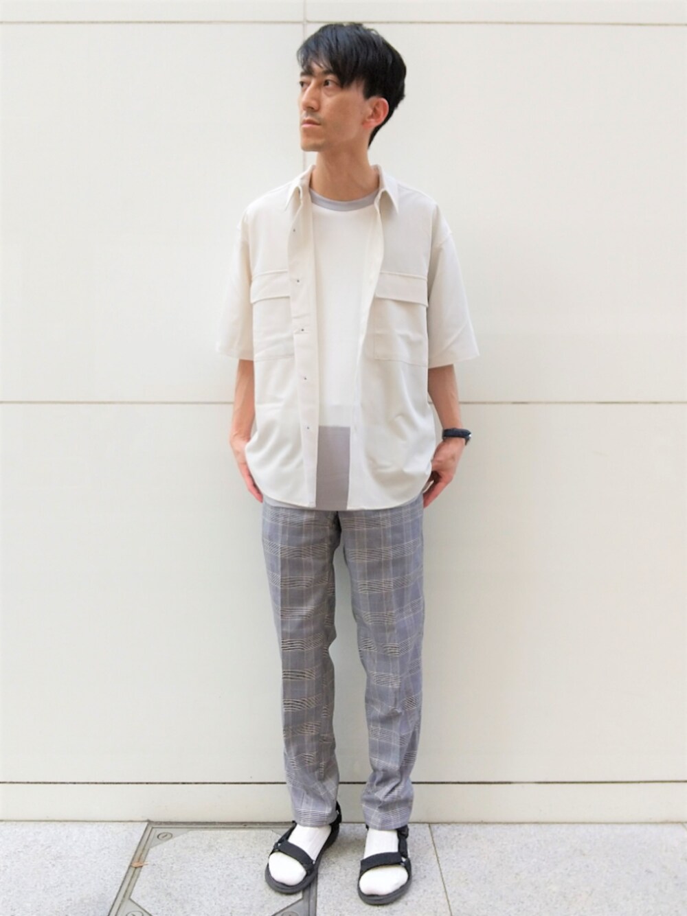 Daikiのシャツ/ブラウス「ワイドプラケットショートスリーブシャツ」を使ったコーディネート
