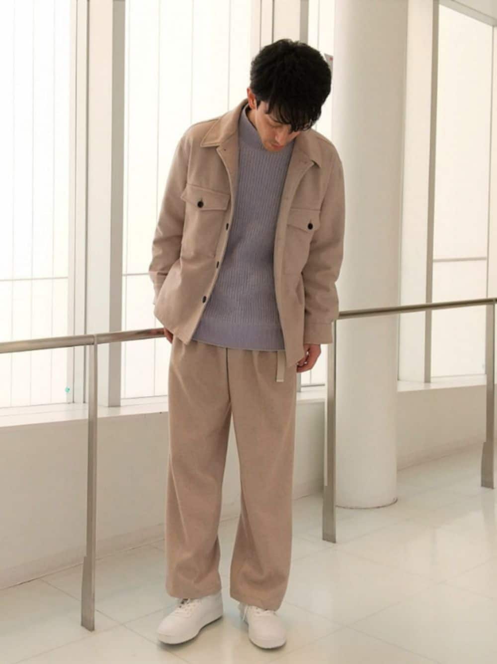 こんにちは。 以前ご紹介したエアリーストレッチフラノセットアップのインナーをニットにしてくすみカラーでスタイリングしました!! インナーに使用した「ホイップモールルーズニット」は優しいタッチが特徴的なモール素材を使用したモックネックのニット。 オーバーサイズのシルエットで可愛らしい印象です。 ポリエステル100%でお手入れしやすいのも嬉しいポイント。 チクチクが苦手な方にもおすすめのアイテムです。 ぜひ店頭・オンラインでチェックしてみて下さい!! 着用サイズ:身長174cm ブルゾン:Mサイズ ニット:Mサイズ パンツ:Mサイズ