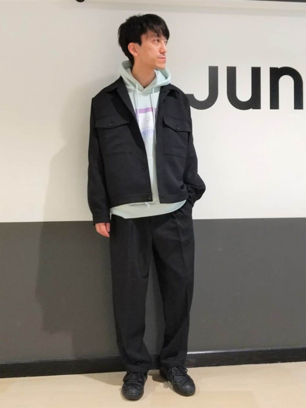 こんにちは。 セットアップの新作が入荷しました!! 『ウォッシャブルサージセットアップ』 アウターはドルマンスリーブで袖・身幅はゆったりとしていますが、着丈はやや短くすっきりした印象でメリハリがきいています。 ブラックのセットアップでもインナーでシャーベットカラーを合わせることで春を意識したコーディネートができます!! パンツは着用のワイドの他にスリム、バルーンの3種類からお好きなシルエットが選んでいただけるのも嬉しいポイント!! ポリエステル100%でシワになりにくくイージーケアアイテムです。 気になるアイテムは店頭・オンラインでぜひチェックしてみて下さい!! 着用サイズ:身長174cm ブルゾン:Mサイズ パーカー:Mサイズ パンツ:Mサイズ