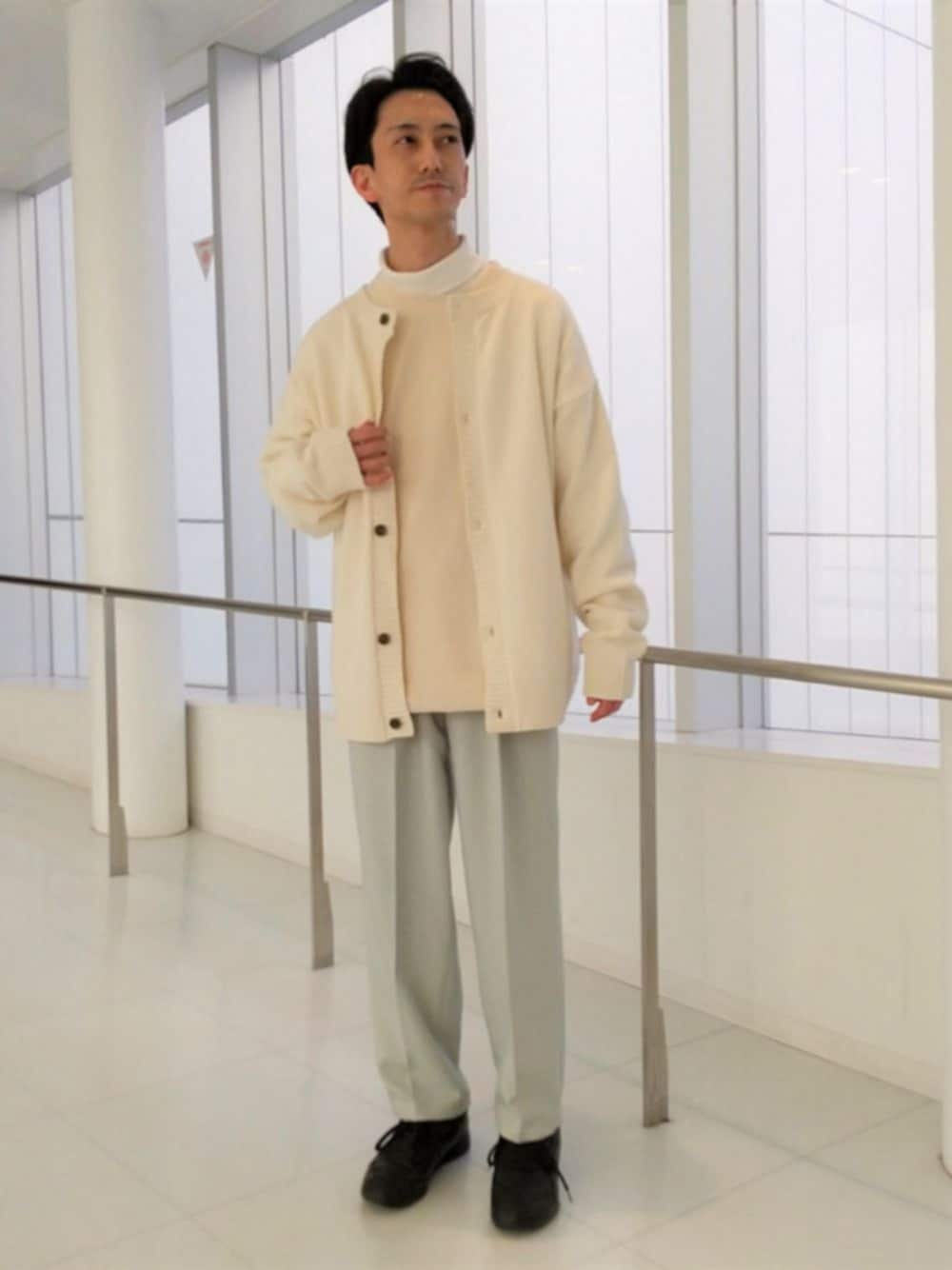 こんにちは。 まだまだ寒い日が続きますが春物が着たくなる時期ですね。 今回はホワイト、ベージュ、ライトグリーンの淡い3色を使ったコーディネートです。 着用のカーディガンは前後逆にも着れてプルオーバーにもなる2WAYタイプです。 オーバーサイズで厚手なので寒い日にも重ね着しやすくまさにこの時期にピッタリのアイテム!! 春色のパンツとコーディネートすれば一気に気分も変わりますよ。 気になるアイテムは店頭・オンラインでぜひチェックしてみて下さい!! 着用サイズ:身長174cm カーディガン:Lサイズ プルオーバー:Lサイズ パンツ:Mサイズ