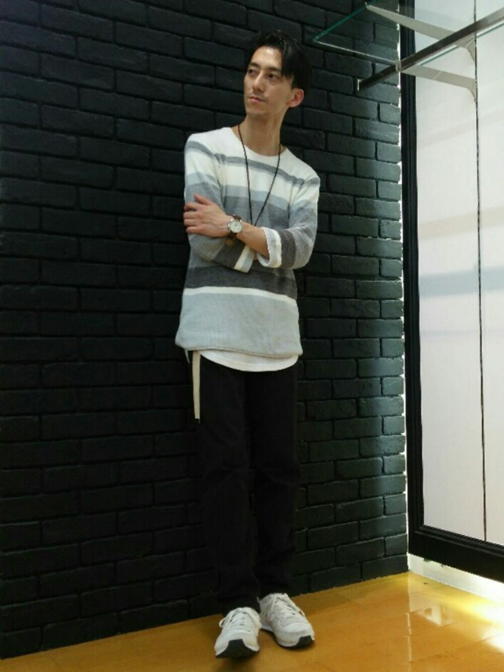 Daikiのニット/セーター「メランジランダム8分袖ボーダークルー」を使ったコーディネート