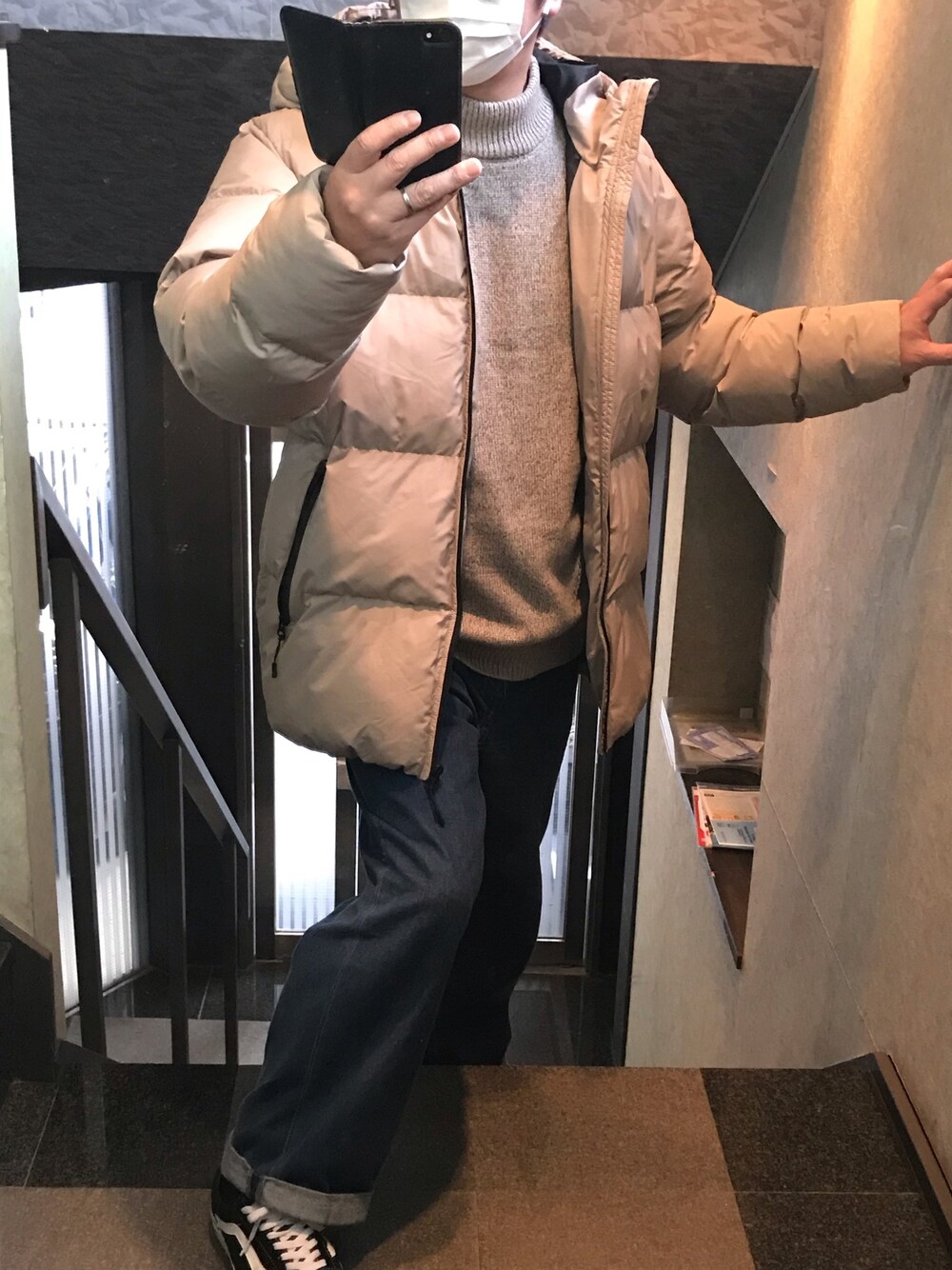 おはようございます☀ 久しぶりに寒い朝😨 GUの中綿ジャケットで 合わせてみました。 ゆるい感じで楽です。