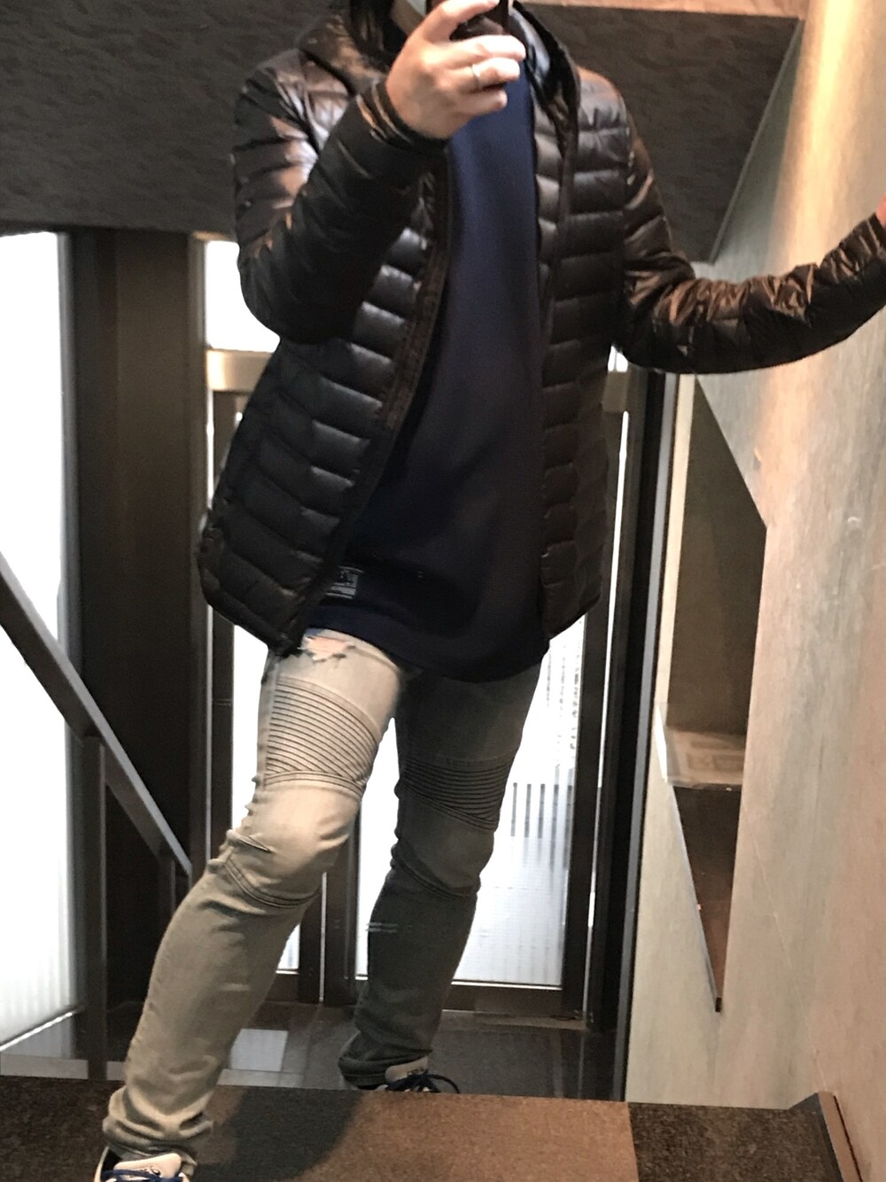 おはようございます☁️ 冬に戻ったかのように 寒かったので、薄目の ダウンジャケットで 合わせてみました。