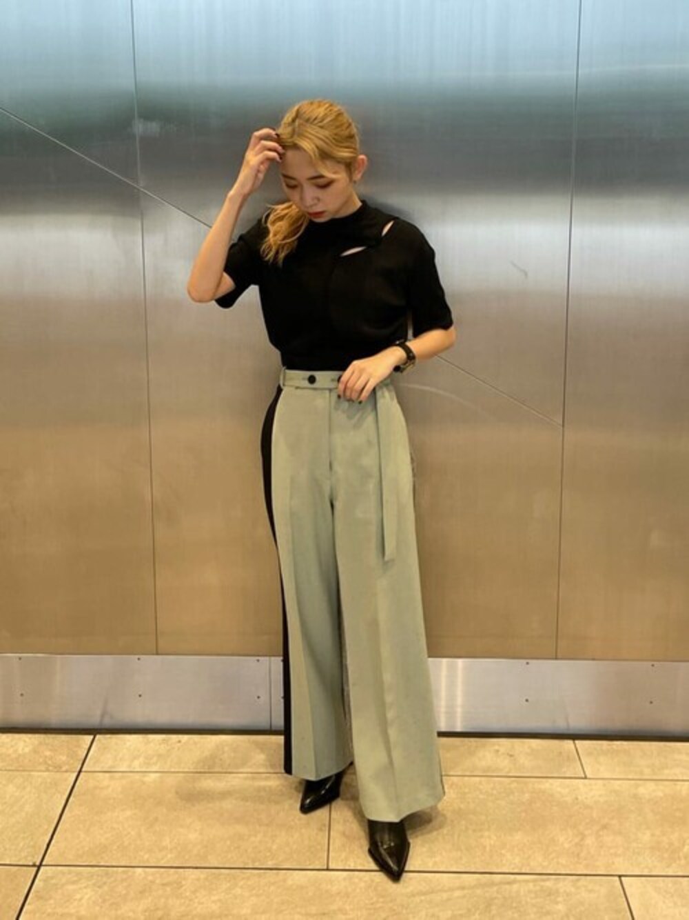 恵利香(UNITED TOKYO 神宮前 W)のTシャツ/カットソー「アートスリットパイピングトップス」を使ったコーディネート