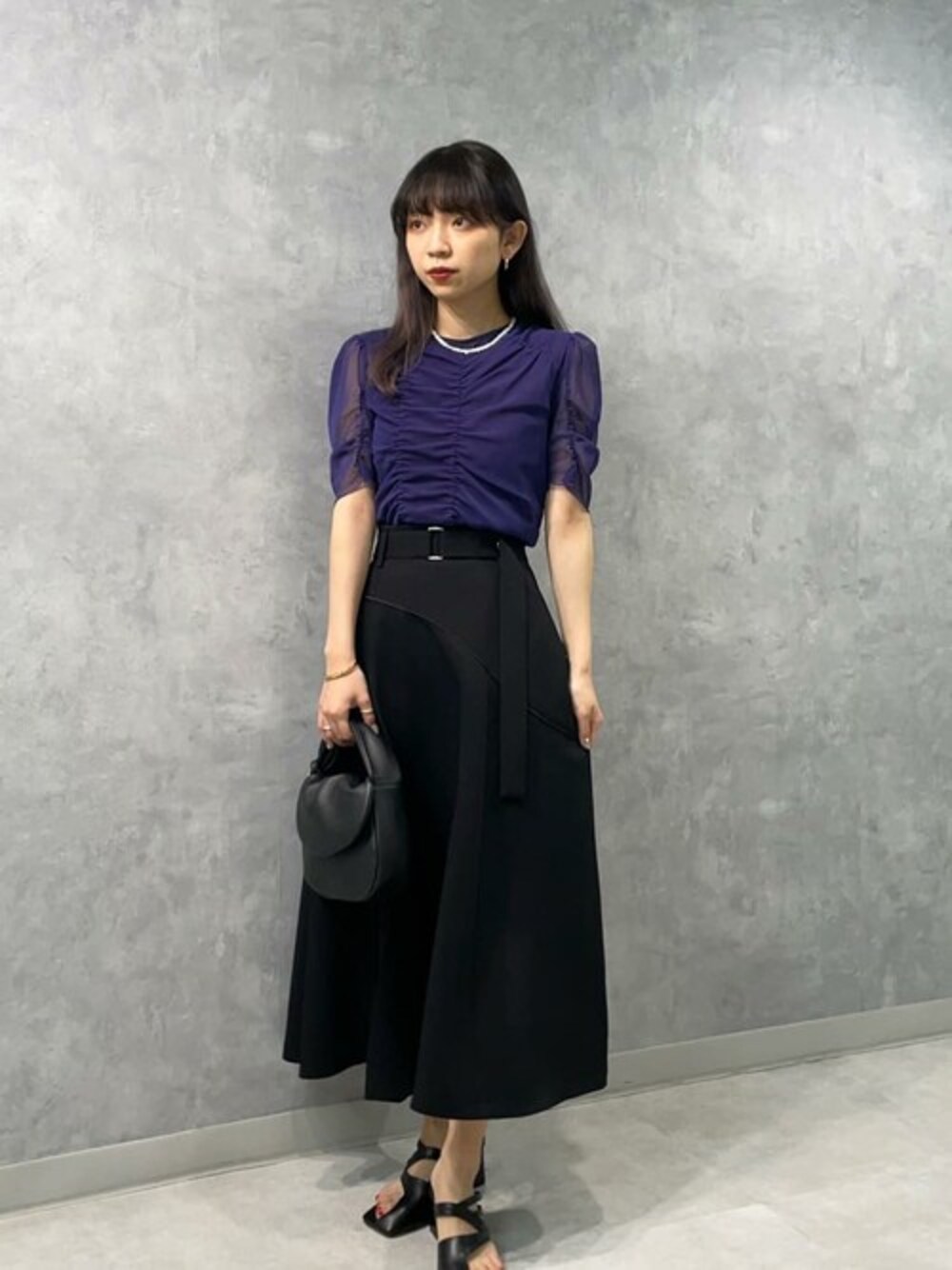 上品さのあるモードコーディネートです! エレガントな色と素材使いがオススメです! チュールの胸部分が2枚生地が重なっているので、透けが少ない為安心して着て頂きありがとうます!