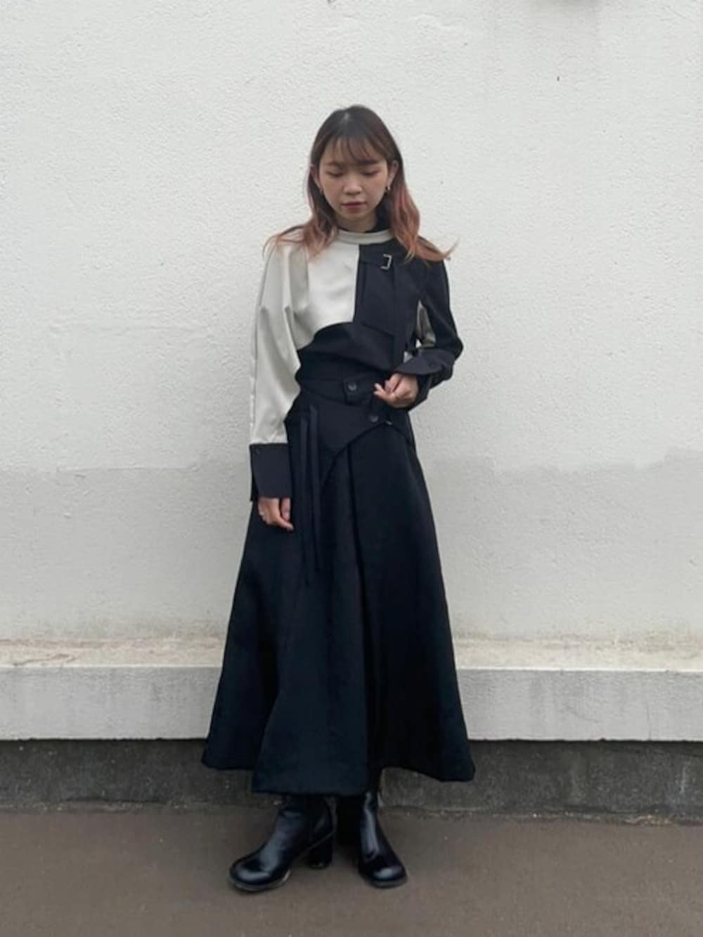モード×エレガントコーデです! イージーケアで、着心地も軽く使い勝手のいいアイテム達の掛け合わせです! ちょっとしたオケージョンにももってこいです!
