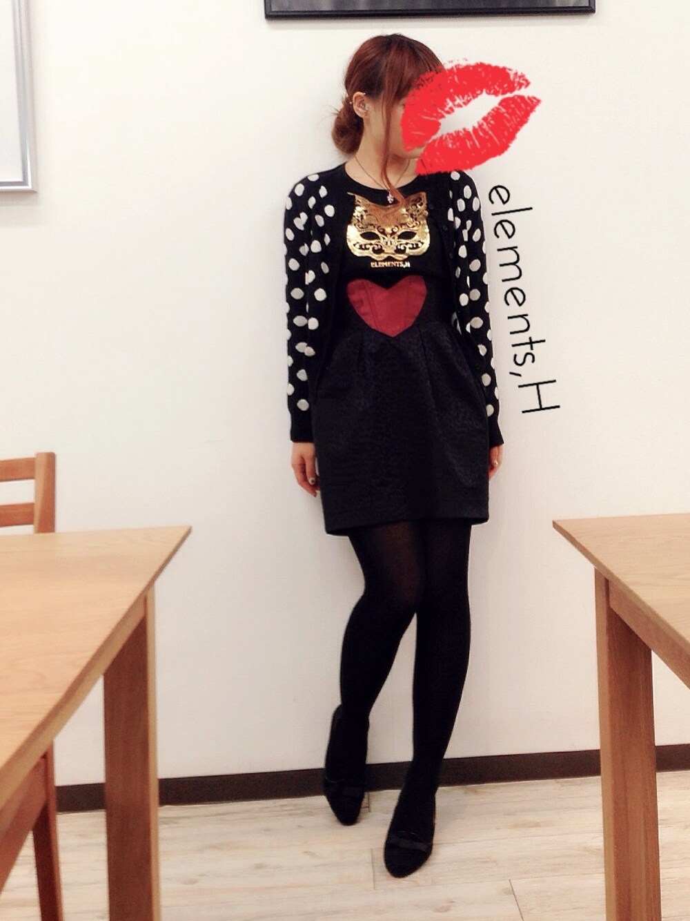 CAT MASK×真っ赤なハート♡ カットソー&スカート/elements,H http://www.elementsh.jp