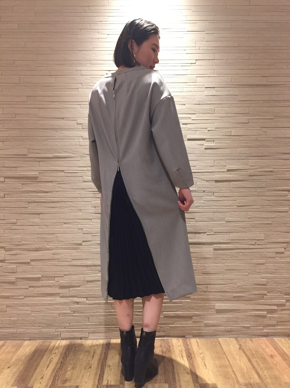 人気のBACK PLEATS ONEPIECEが長袖で入荷! バックから見たプリーツデザインが何よりも人気のポイント ファスナーでお好みに調節でき、普段着はもちろん、お仕事にもちょっとしたお呼ばれにも活用していただけます 程よいコクーンシルエットなのでスタイルアップにも○