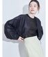 甘くなりがちなフレアスカートもブラックだと少しモードに。 ランダムに入ったタックが動きを演出してくれます。 ウエスト後ろはゴムになっておりとっても楽にお召しいただけます。