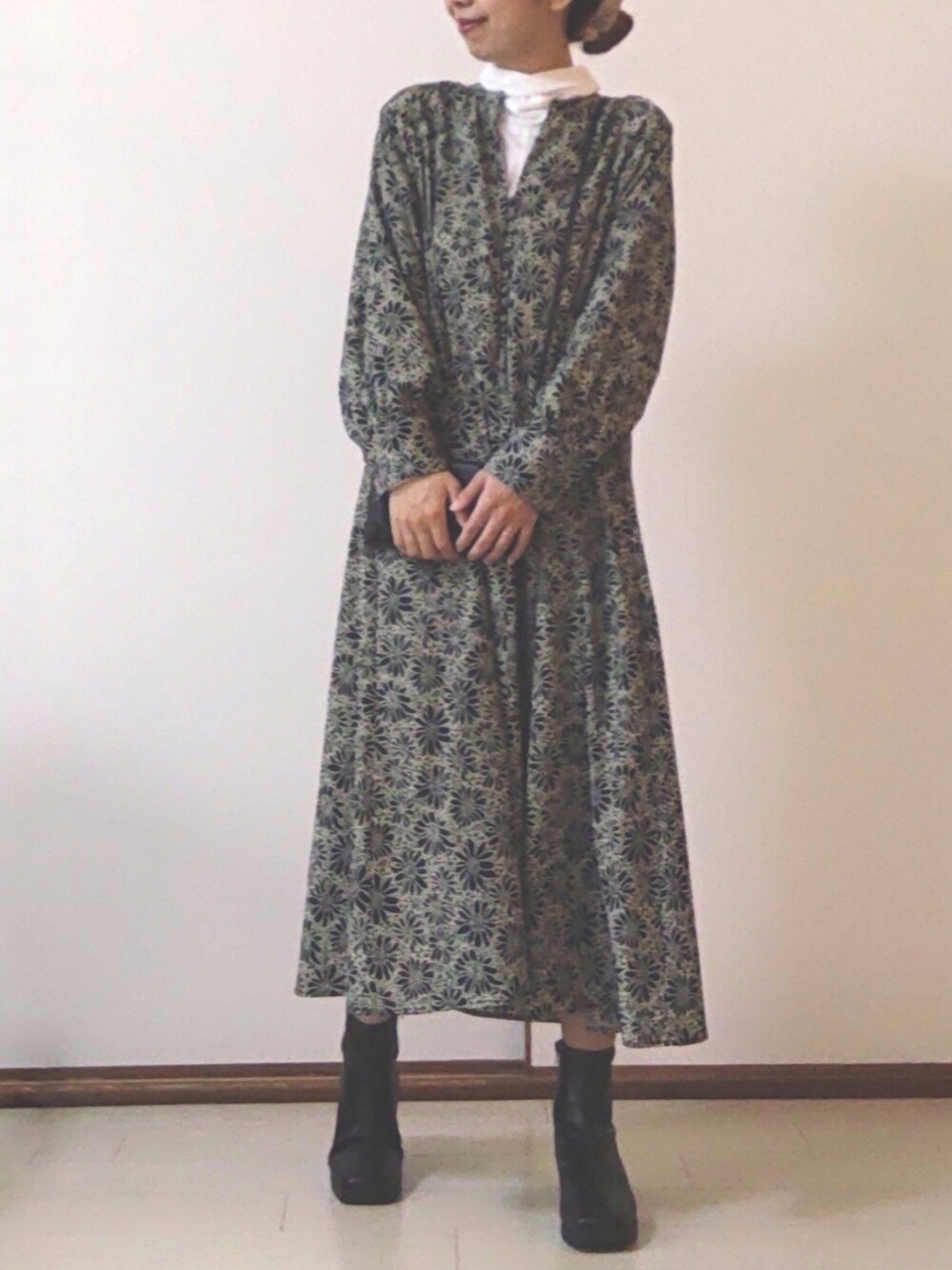 りり🌷のワンピース「花柄ラグランワンピース」を使ったコーディネート