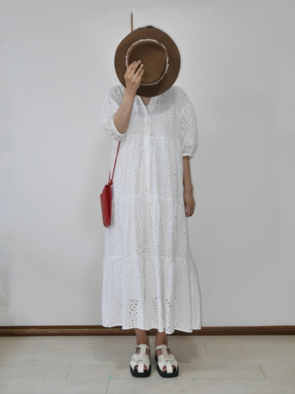 りり🌷のワンピース「エンブロイダリーレースティアードワンピース【キャミペチ付き】」を使ったコーディネート