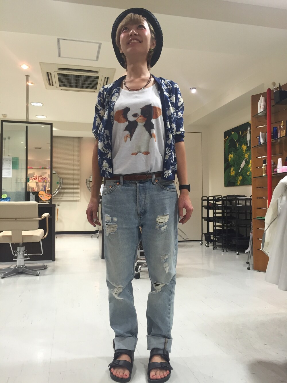 yuuuuuucaのデニムパンツ「Monki Imoo Boyfriend Rip & Repair Jean」を使ったコーディネート
