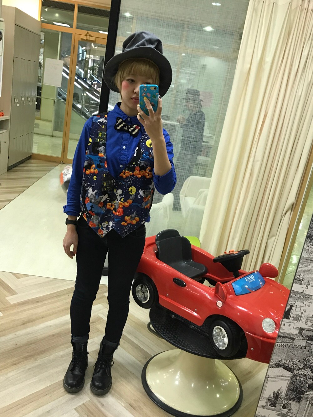 ブラック系のブーツ、グレー系のハットを着用したレディースの秋コーディネートの1枚目の写真