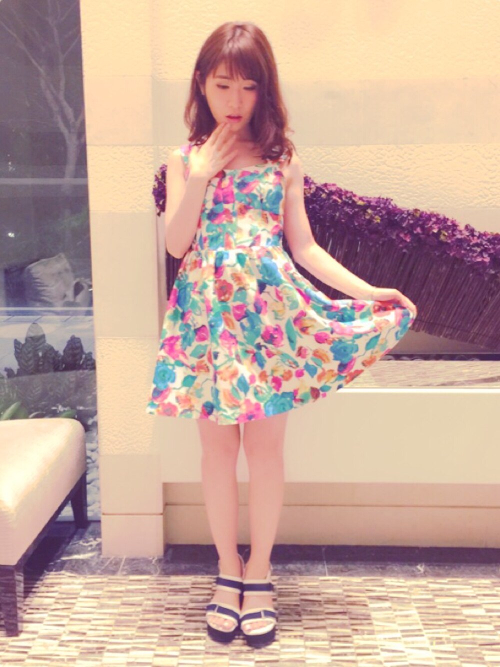 真夏になった ワンピースの色がハッピーな感じで、好き💕😝