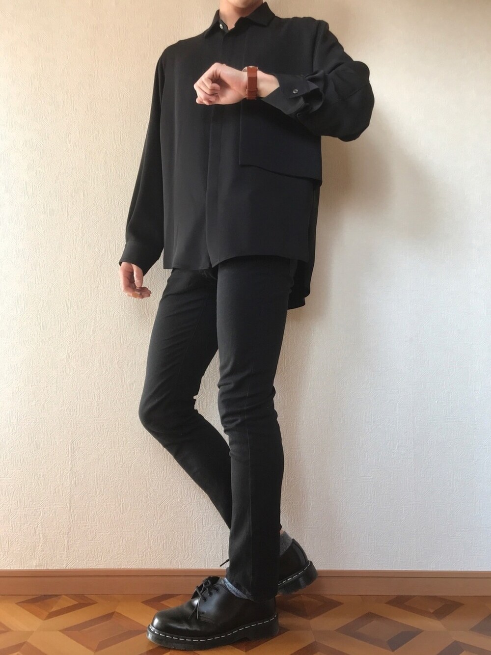 おはようございます🌞 いいね・フォロー・セーブありがとうございます🙇✨ 今回は、ブラックコーデです。 着用感となっています。 ご参考までに😆 175cm 59kg 肩幅 普通 ウエスト 78cm ---------------------------- ●CULLNI シャツ 若干余裕があるサイズ感。 ----------------------------- ▶︎Insta 「e7k08210414」