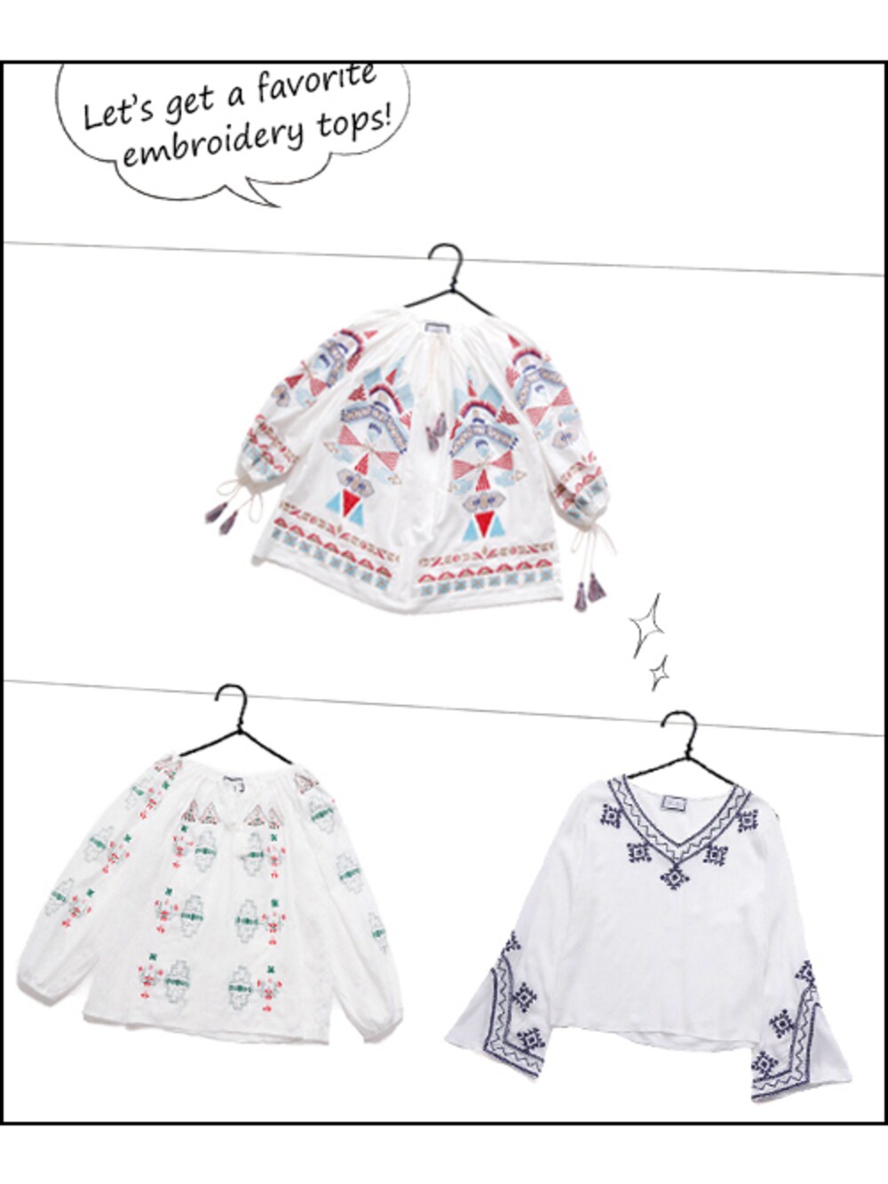 カラフルな糸でデザインされている刺繍は今季注目のアイテムです。 胸元と袖に付いているフリンジがポイントです。 フリンジの長さは約4cmで動く度にユラユラと揺れるのが女性らしさを演出してくれます。 ボリュームのある形は、体を華奢に見せてくれて女性らしい雰囲気を作り出しています。 独特なデザイン刺繍がポイントのトップス。 やや薄めにリブが入っているので、体のラインを拾わずに着やすいデザインです。 また、ボリュームのある形は、体を華奢に見せてくれて女性らしい雰囲気になます。 刺繍の配色が、スカートにもデニムにも馴染むのでコーディネートを楽しめるアイテムです。 手元のしぐさも華麗に演出してくれそうな袖のディテールがポイントのトップス。 生地は薄手でコットンを使用しているので、着心地が抜群です。 ボトムス次第でドレッシーになったりカジュアルになったりと様々なコーディネートを楽しめるアイテムです。 ellerie(エルリエ)公式通販 http://www.ellerie.jp/ 春物続々入荷しています♡ 新作アイテムが30%OFFになるタイムセール実施中です。