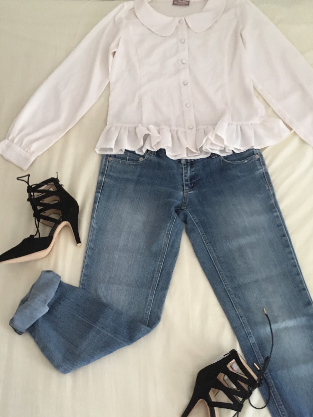 ブラウスをラクマで販売中♬ 意外にパンツでもいけるかな?