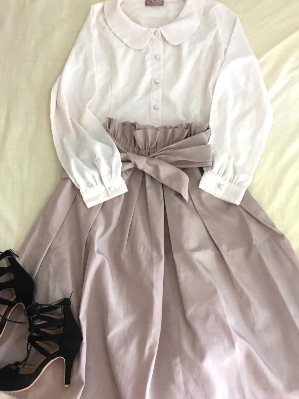 こちらもラクマで出品中のブラウスと、スカートのコーディネート。このスカートはトップスとあわせやすくてお気に入りです。このコーディネート、実際には着ていないけど…普段からあまり考えずに直感で組み合わせしています。笑