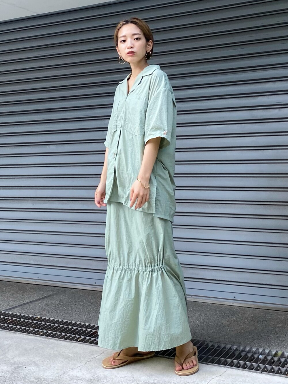 ERI(NOMINE本社スタッフ)のシャツ/ブラウス「ワッシャー開襟シャツ【セットアップ対応】」を使ったコーディネート
