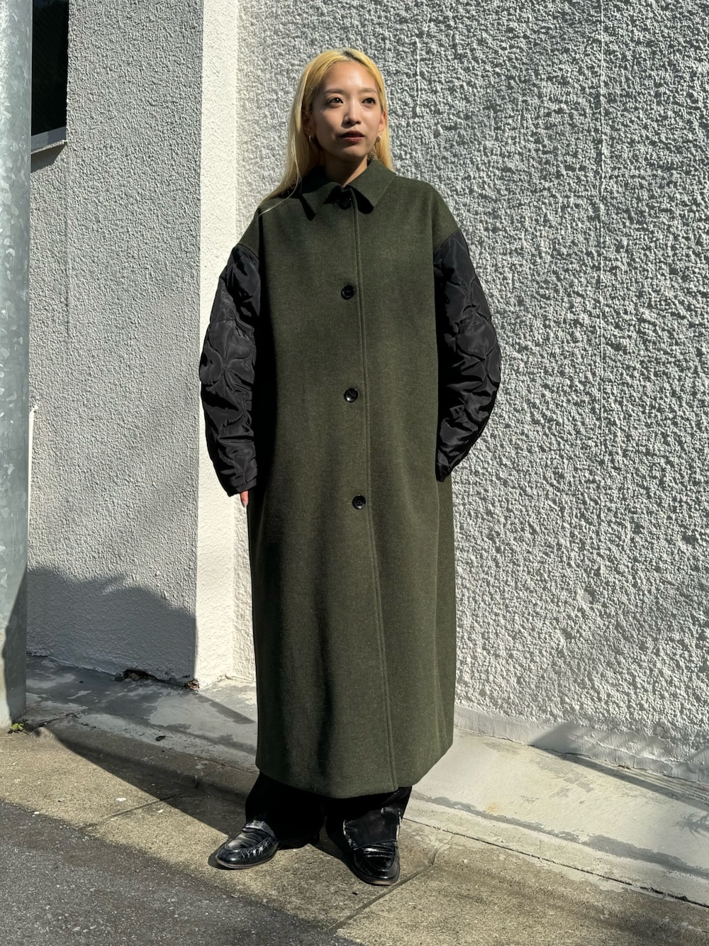 ERI(NOMINE本社スタッフ)のステンカラーコート「袖キルティングステンカラーコート」を使ったコーディネート