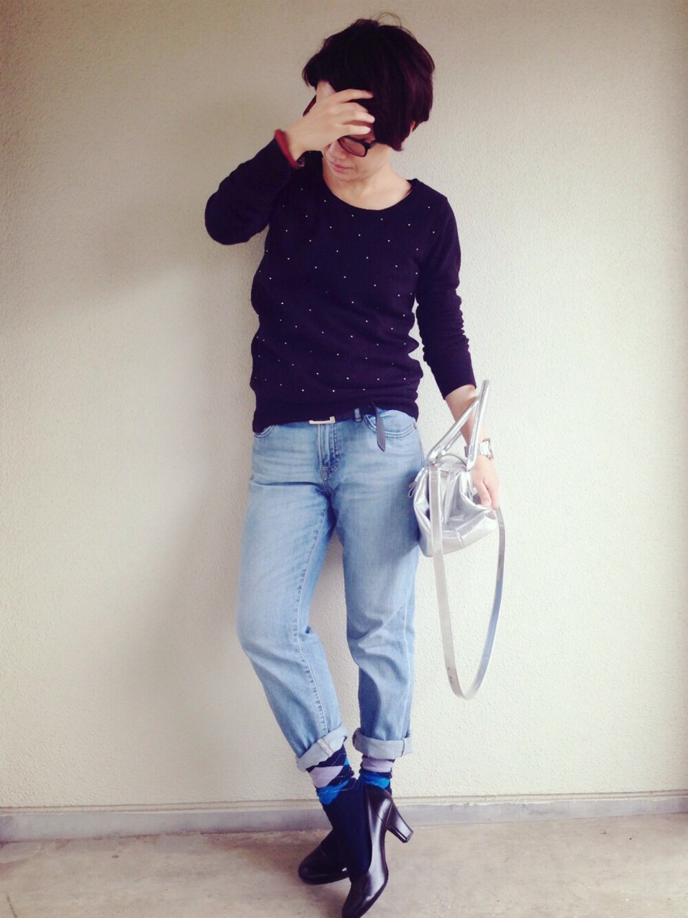 アーガイル柄ソックスー(「◉◞౪◟◉)「 ユニクロで買ったやつですね(*´艸`*) トップスに丸いポツポツが付いてるんです。ビーズみたいな。 (꒪д꒪) 所々ない…w ビーズあるあるですね(「◉◞౪◟◉)「 髪の毛伸びました〜(「◉◞౪◟◉)「