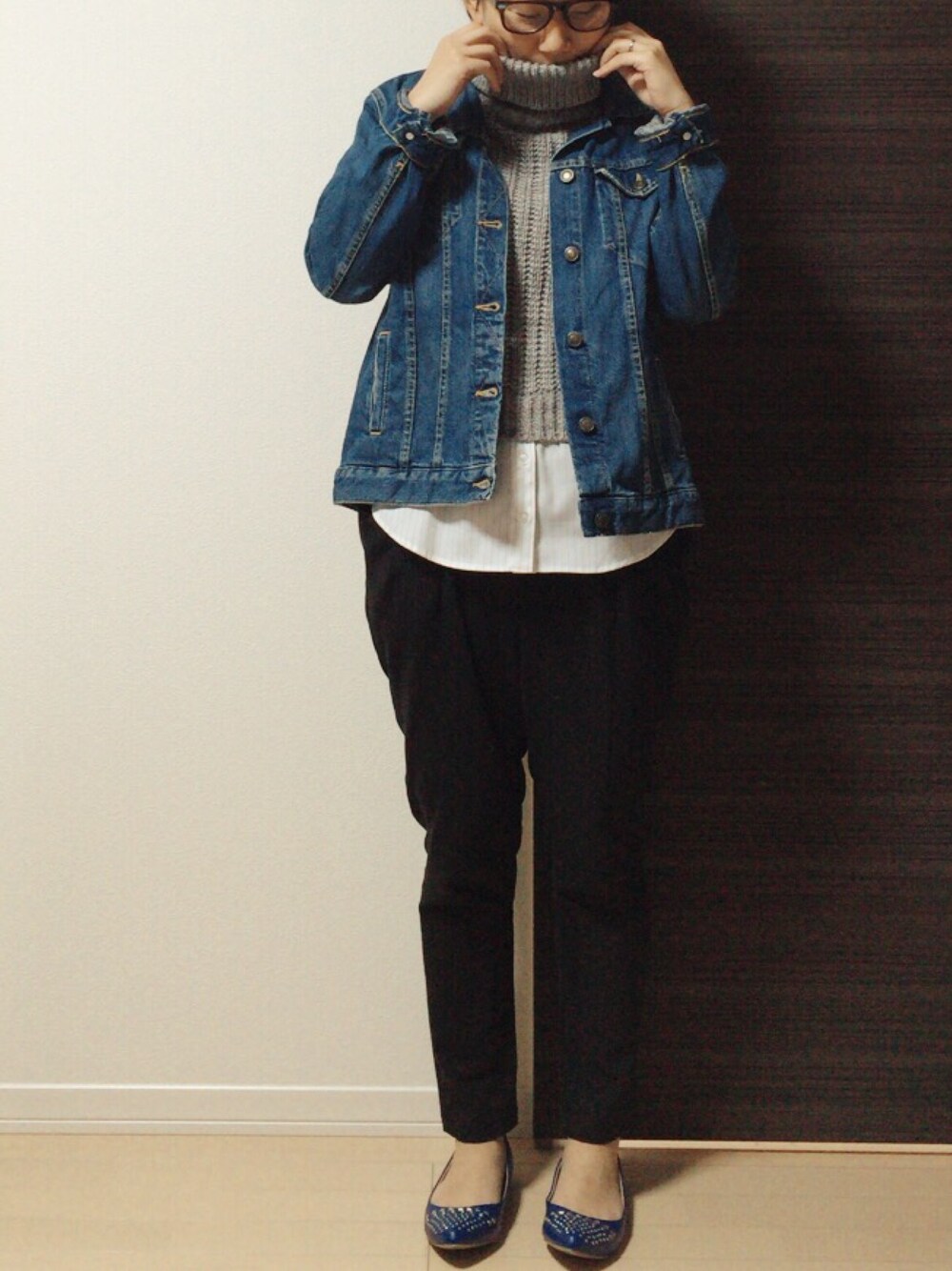 タートルネックは、よくこうやって埋まります😍❤️ 暖かくて、ニヤける😍