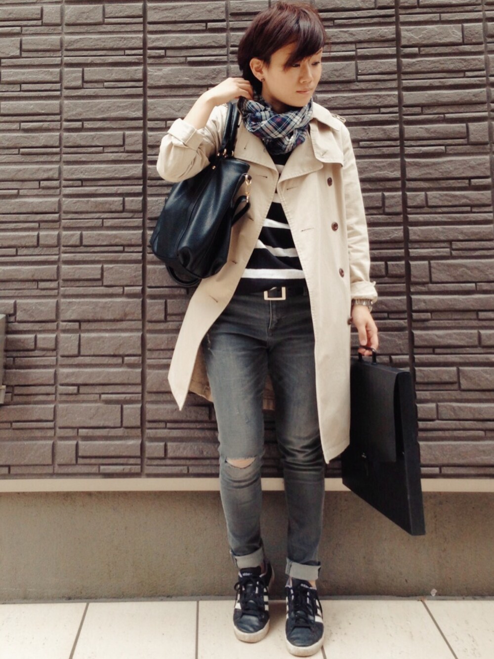 まよのデニムパンツ「ストレッチデニムスリムパンツ 708278」を使ったコーディネート