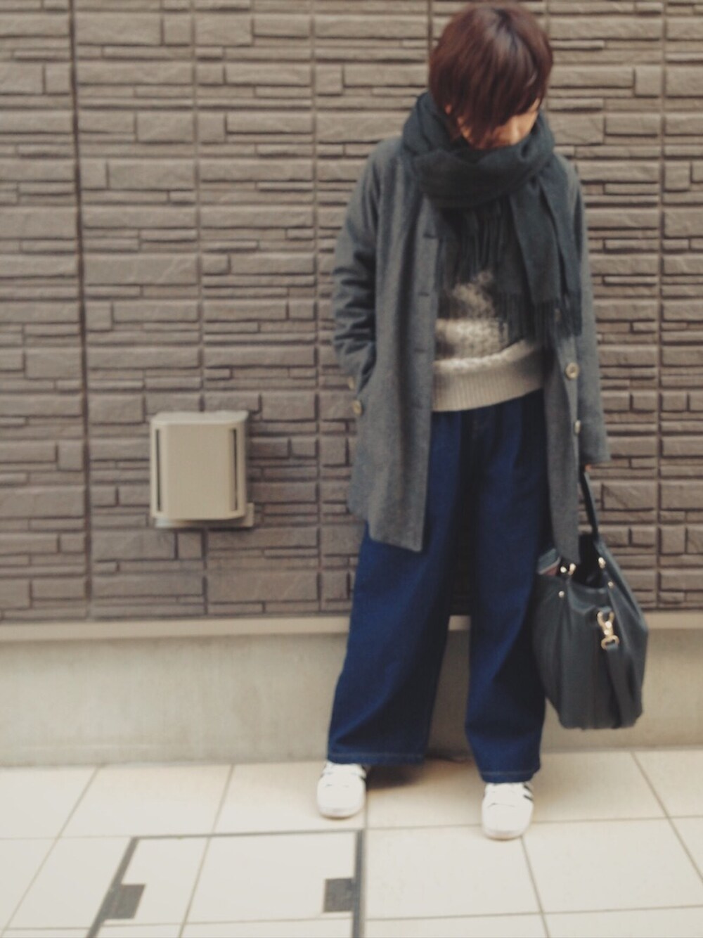 ブルー系のその他パンツを着用したレディースの冬コーディネートの1枚目の写真