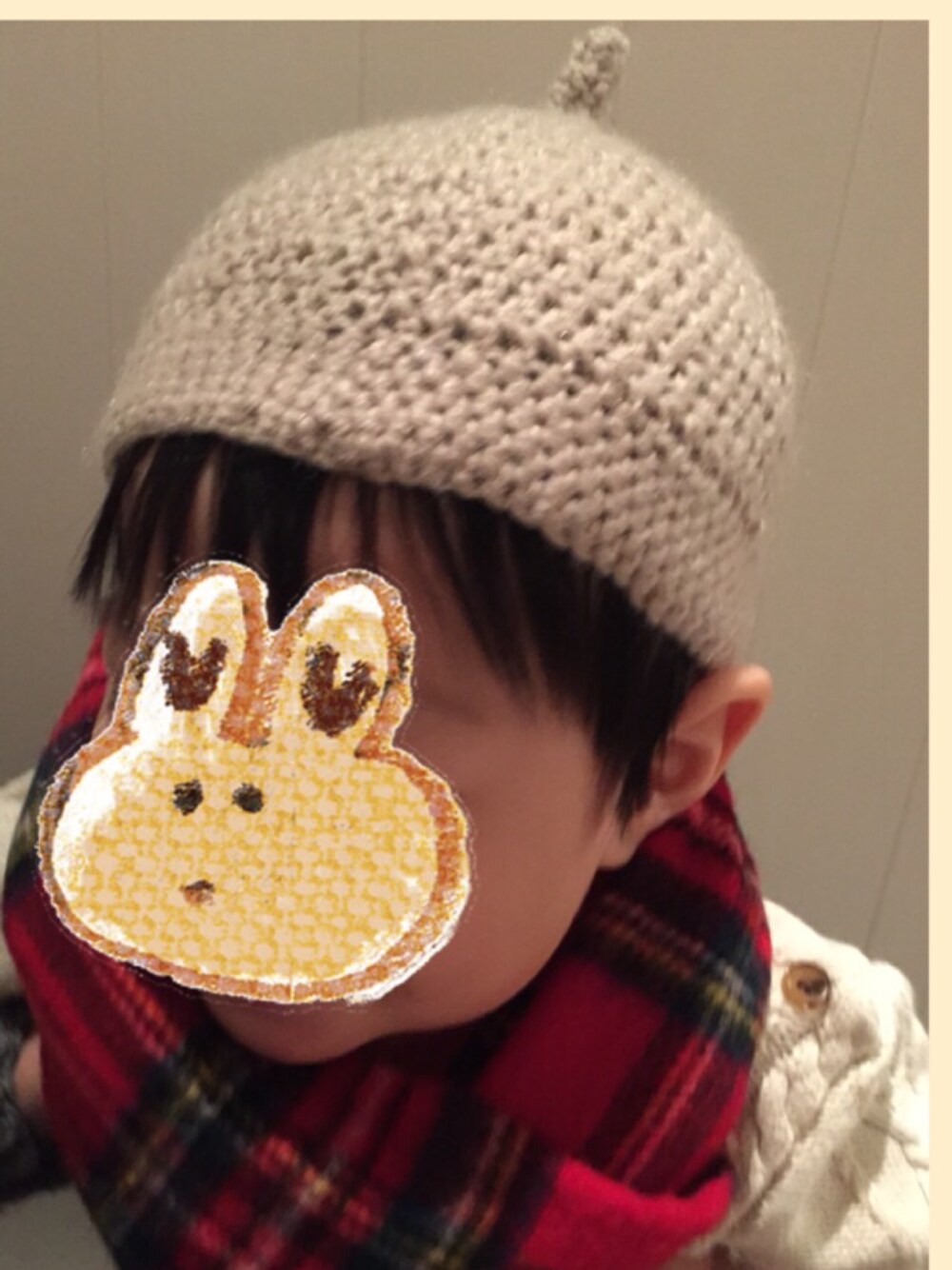 初✨我が子のコーディネート🎵 帽子に合わせてレッドのチェックのマフラーを合わせてみました✨