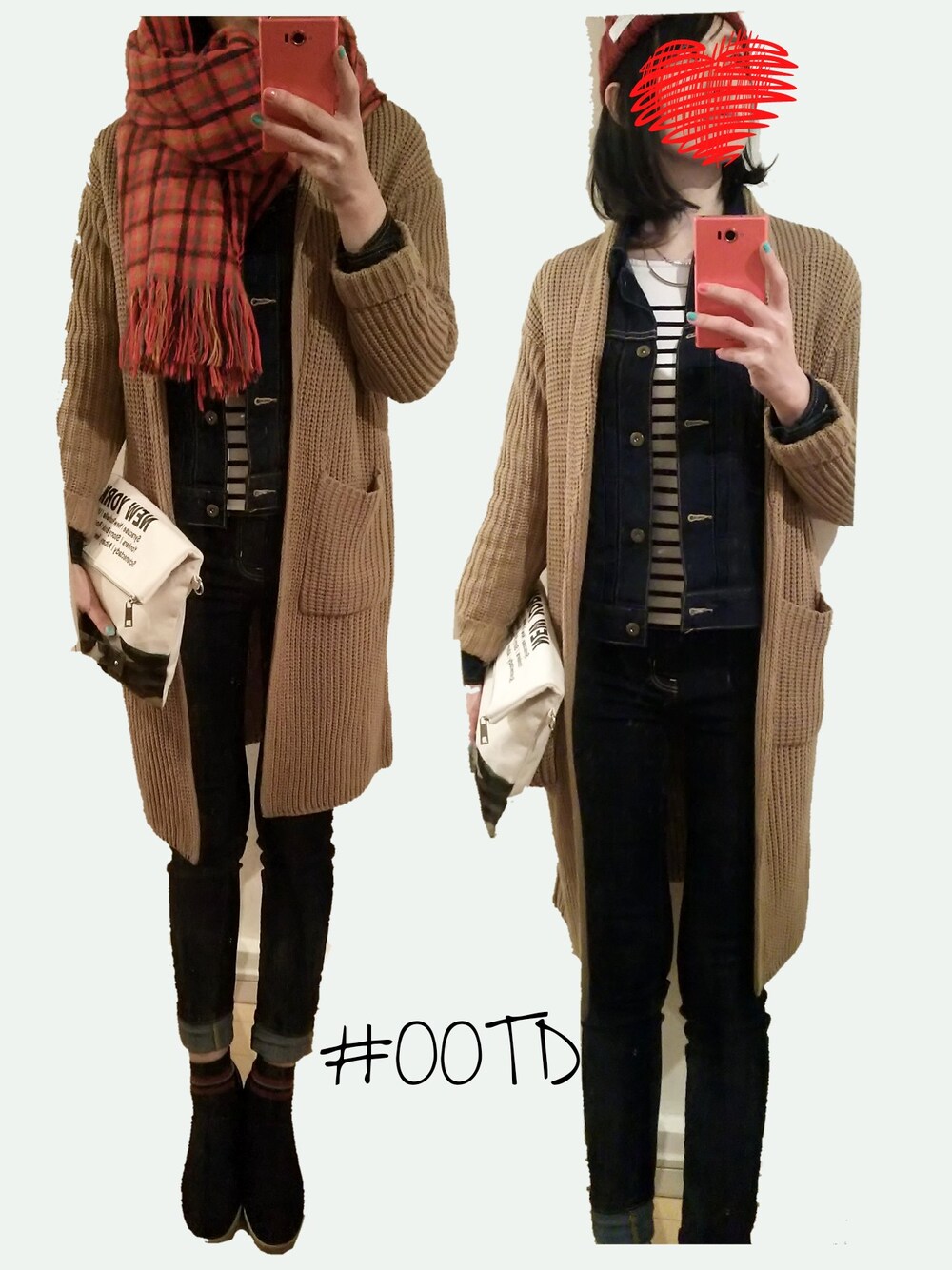 Gジャン×ニットカーデの重ね着スタイル