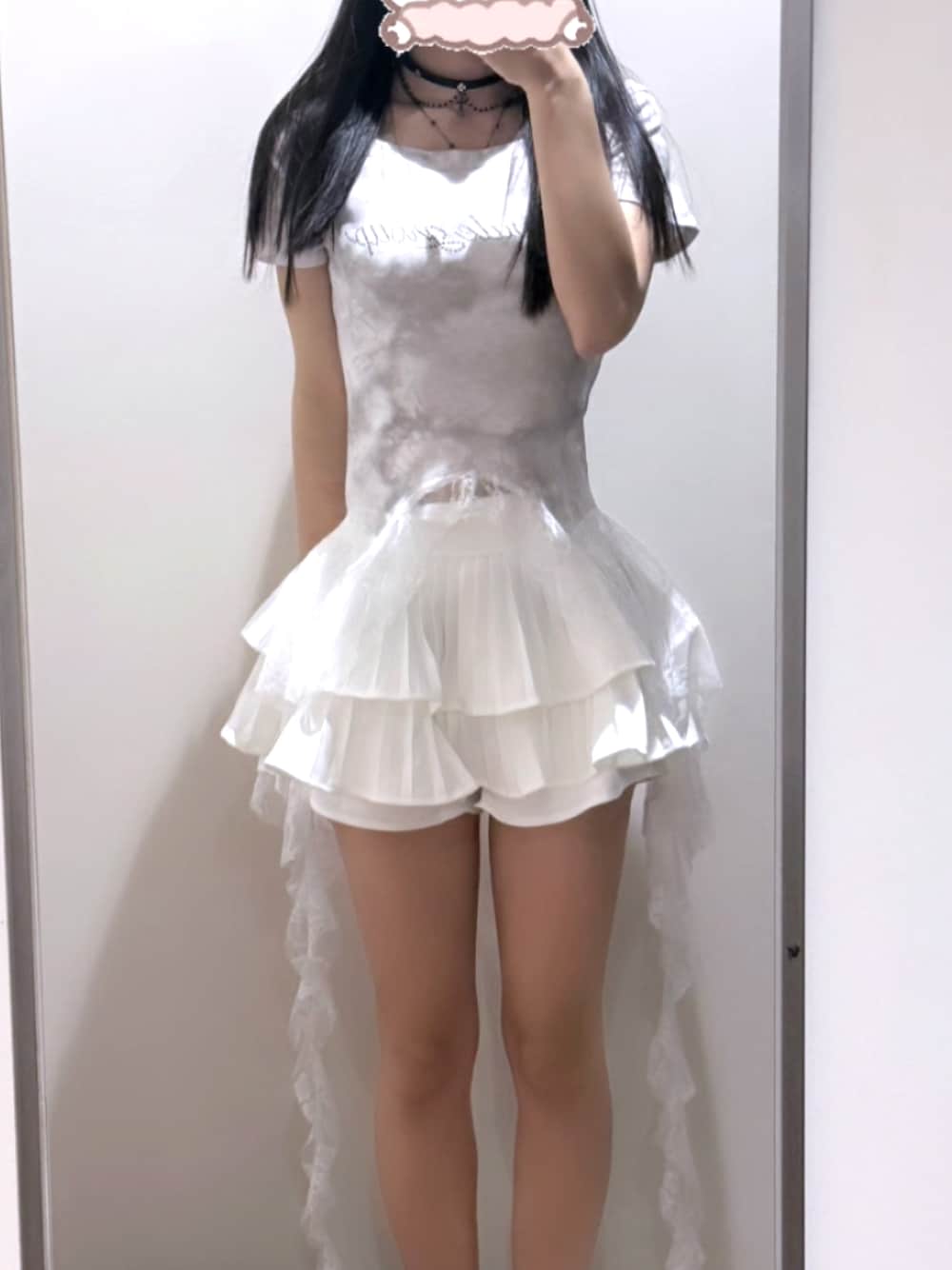 推しポイントはボリュームのあるスカートにトップスのヒラヒラレース!白で涼しさ🆙 トップス LIPS TOKYO スカート SHEIN sz2307165978758487