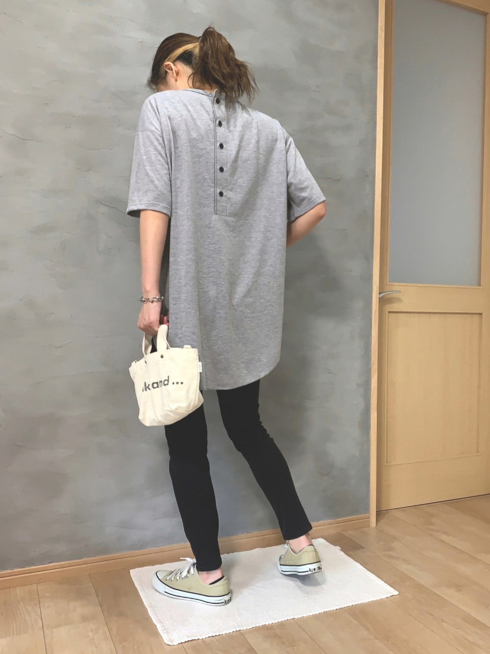 tops📌MATCH&more バックヘンリーチュニック シンプルな服にバックボタンが可愛い💞 裾にスリットがあるのでフロントインして着ても⭕️