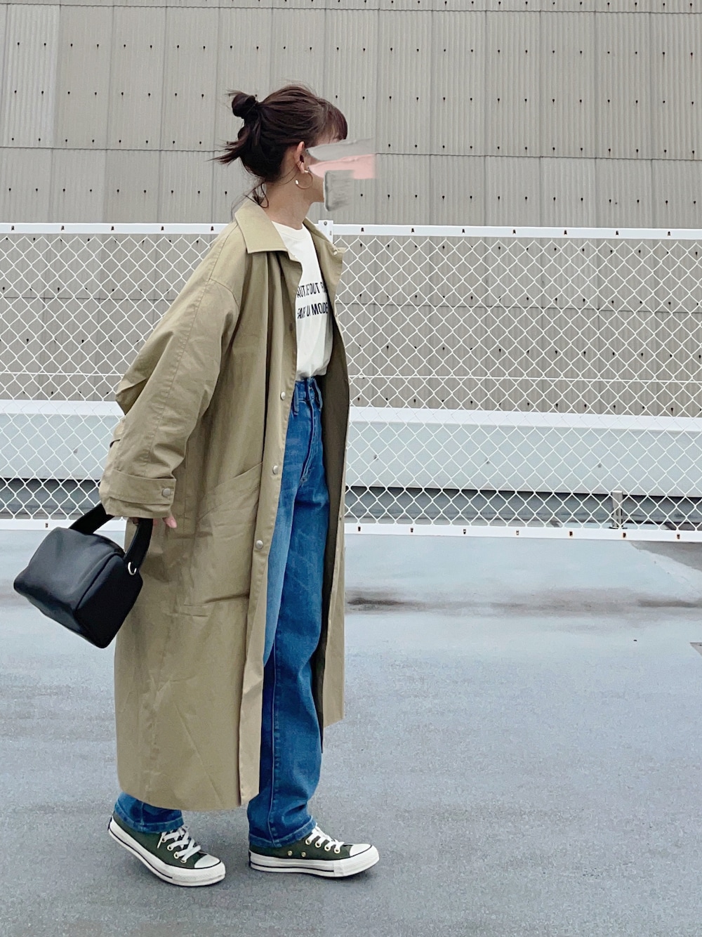 ご覧いただきありがとうございます♪ しまむらさんのテーパードデニムが柔らかくて履き易い✨ タックインで脚長コーデ🦵😃