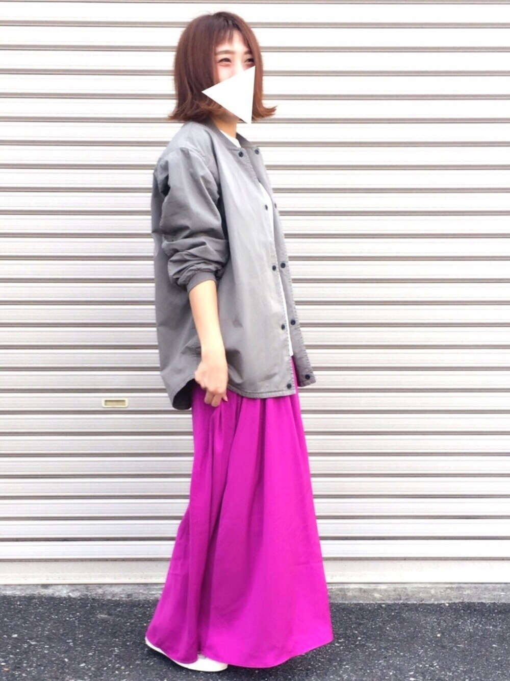 派手派手ムラサキスカート😊✨ マキシスカートまってたよー🎉 意外とムラサキとカーキって 合うんだなって気づいたー🤔 アウターはメンズの借り物やけどこれほしい…😫
