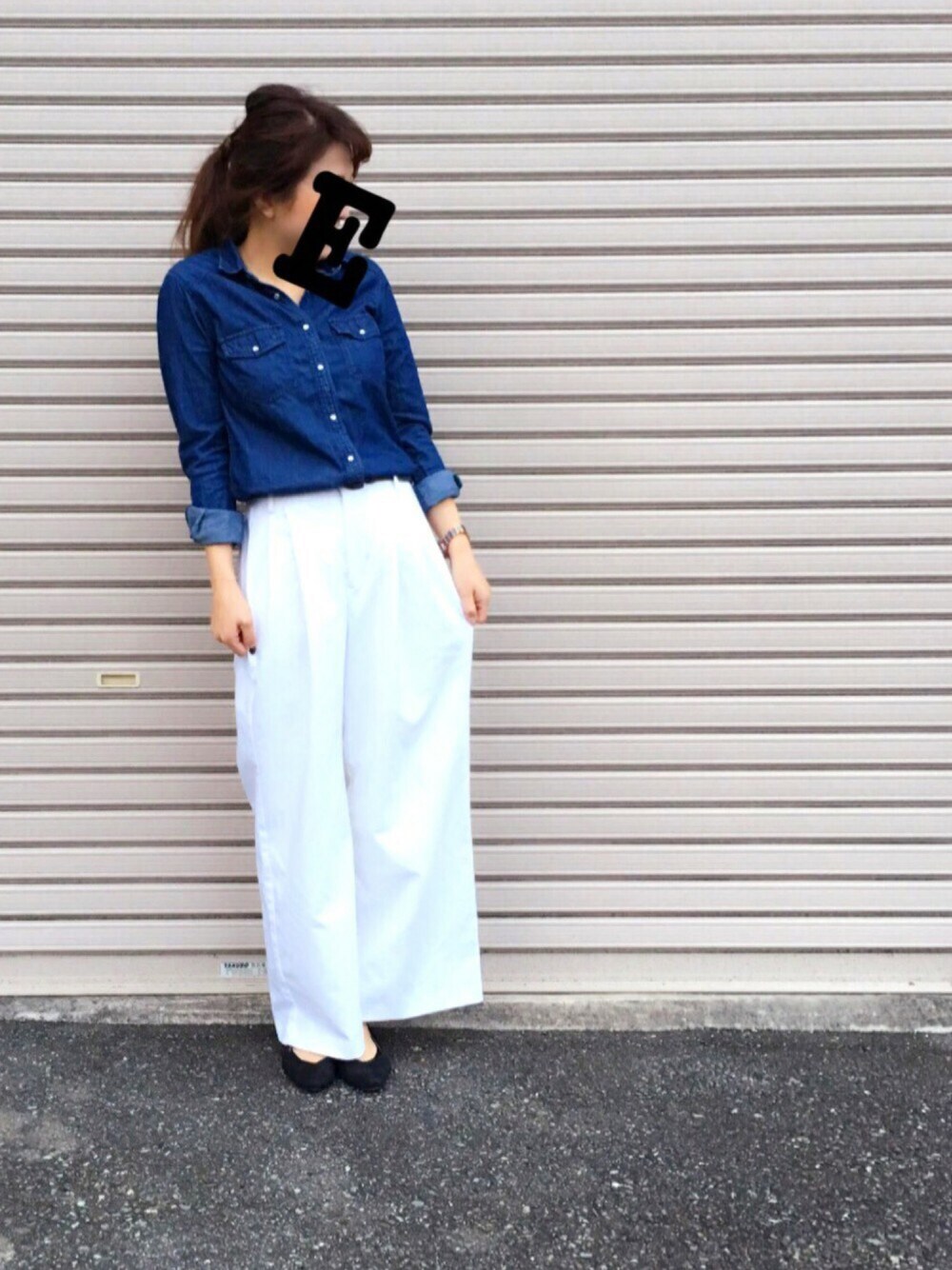 ワイドパンツを2週間ぐらい悩んで買いました(^^) 値段の割に生地がしっかりしてる(^^) ちょっと長めに履きたいからサイズ大きめにした‼︎ デニムシャツと合わせてみました‼︎