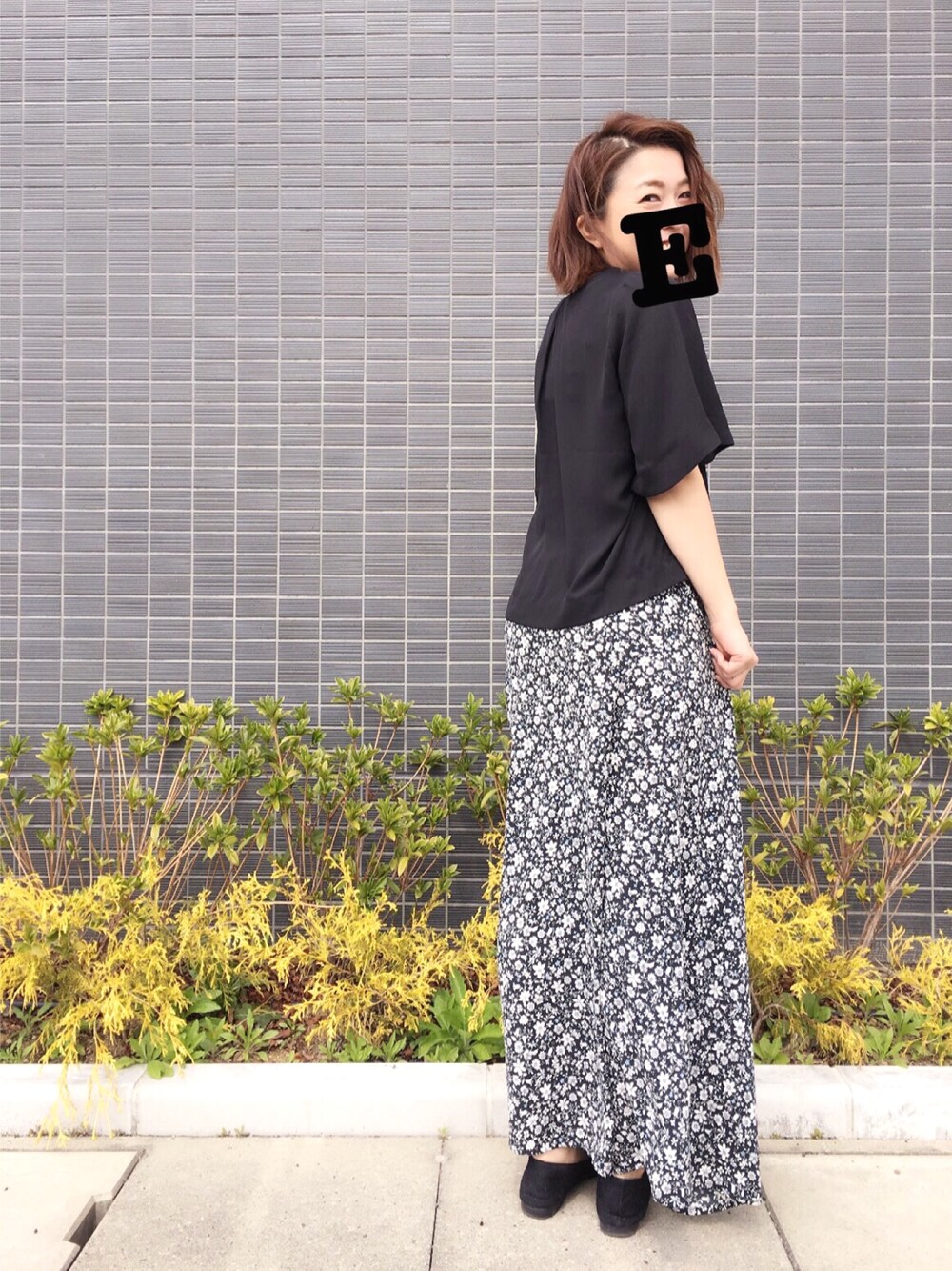スカンツ♡花柄とか普段はかないけど スタッフがはいてるをみて可愛くて 購入してしまった^ ^♡ ブラウスもVネックで首元すっきり。 生地もサラッとしててとっても着やすいです♡