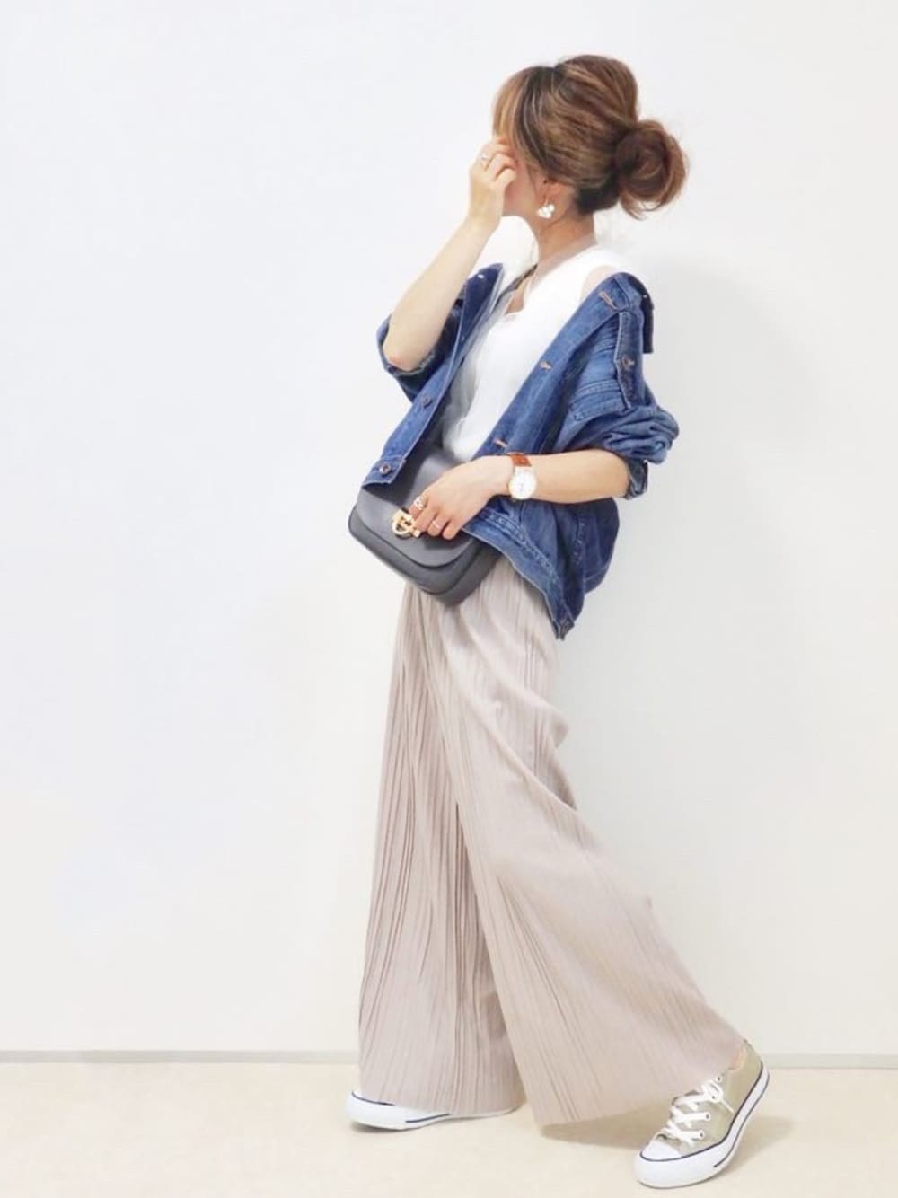 上下fifthコーデ* キレイめアイテムにデニムジャケットとスニーカーでカジュアルダウン☺︎ インスタ▶︎@ema.217