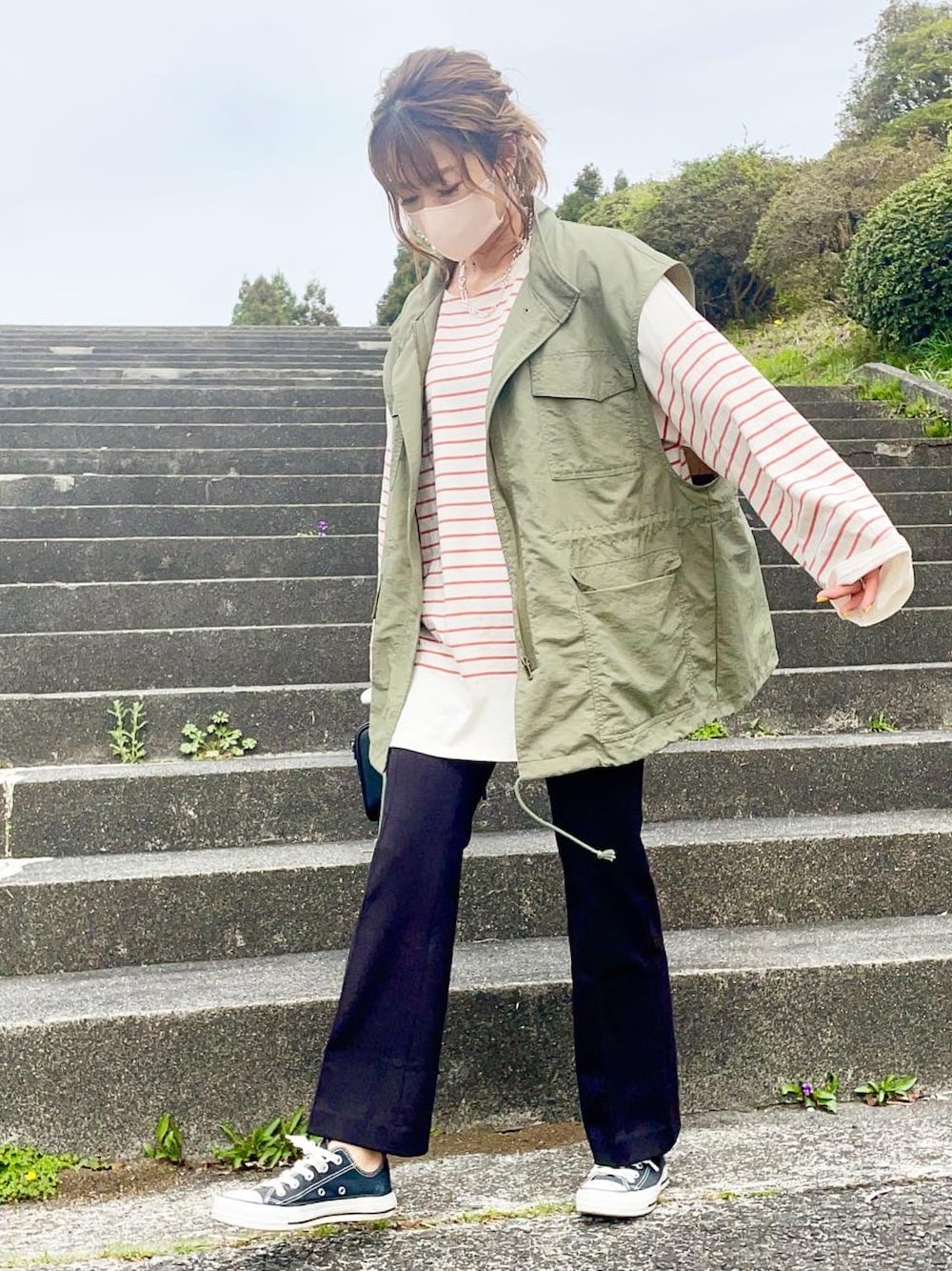 emaのベスト「【お気に入り数4.3万人突破 / ZOZO限定】ハイネックミリタリーベスト」を使ったコーディネート