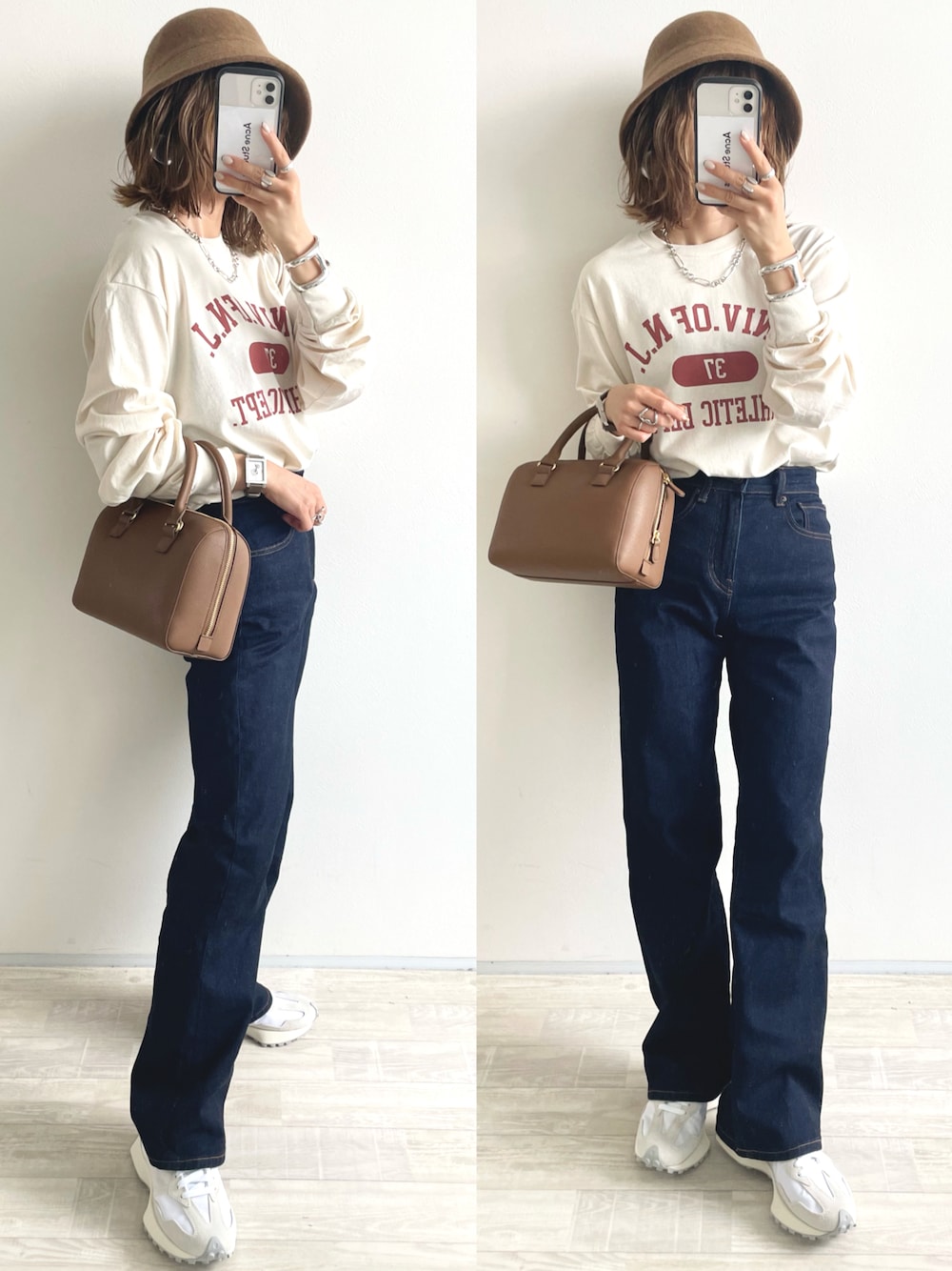 emaのTシャツ/カットソー「GILDAN カレッジロゴ オーバーサイズ プリント ロンT」を使ったコーディネート
