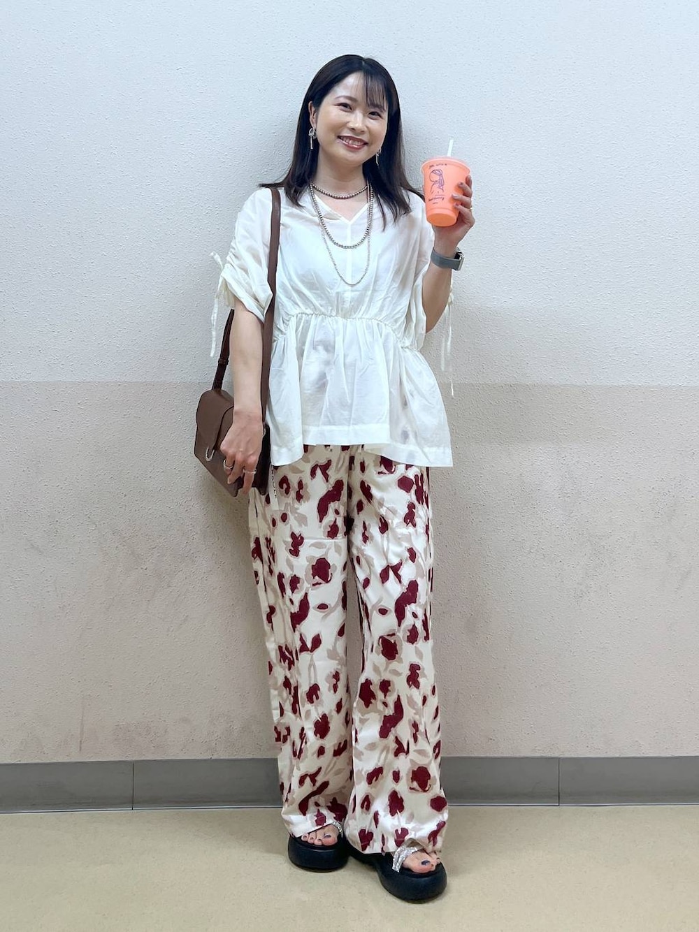 上品な透け感のあるブラウスが 涼しげな印象に// 前後2wayで首元の印象を変えて 着ていただけます! 切り替えの位置が高めなので 着るだけで脚長効果も◎! 総柄がアクセントになる イージーパンツに合わせて 楽ちんなのにきれいめ✨ これからの季節の おでかけコーデにぴったりです!! 155㎝ 骨格ウェーブ トップスFサイズ/ゆったり パンツFサイズ/ゆったり、着丈やや長め ボリュームのある厚底スニーカーで 合わせることでずることなくはけました! サンダルMサイズ/23.5㎝でジャスト 【Instagram】 高校生の息子と小学生の娘との日常♪ 休日コーデも載せてます♡ お気軽にフォローお待ちしてます♪ ▶︎▶︎