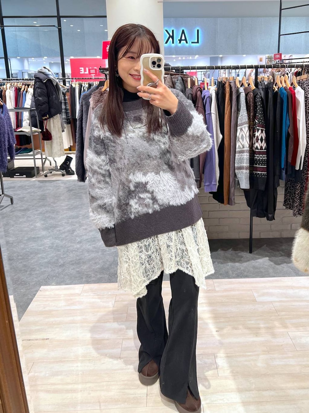 出勤コーデ♪ ニットはフワフワのシャギー素材やニュアンスのある柄が高見えします✨ レースのワンピースをレイヤードするのもオススメです!! 155㎝ 骨格ウェーブ ニットFサイズ/ゆったり ワンピースFサイズ/ゆったり パンツFサイズ/ゆったり、着丈長め ブーツMサイズ/23.5㎝でジャスト 【Instagram】 休日コーデも載せてます♡ お気軽にフォローお待ちしてます♪ ▶︎▶︎