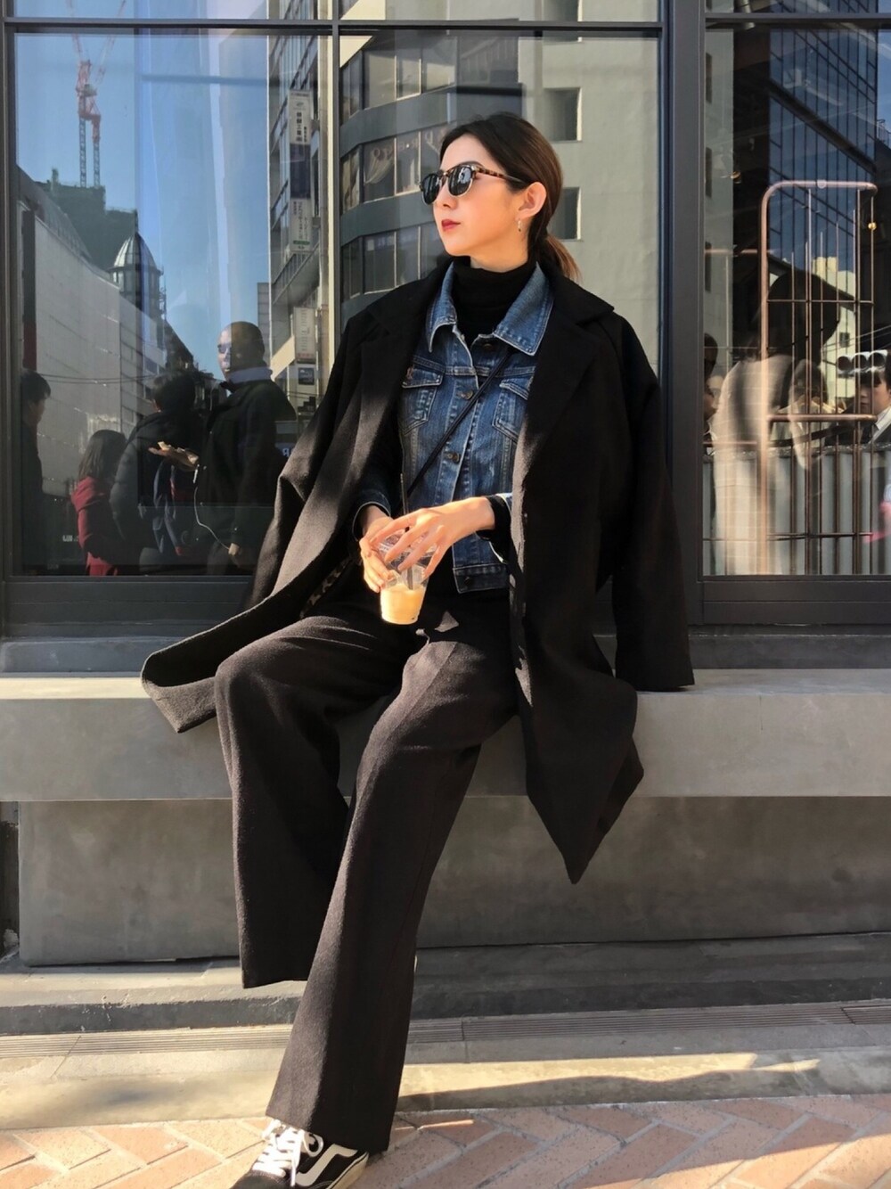 いつも通り黒の服を選びがちですが、 ブルーのジージャンを合わせて重たくなり過ぎないようにしてみました🌟 インディゴブルーは、良く合わせるけどブルーも新鮮で可愛い🤤♥️ 個人的にとっても好きな服装です~!