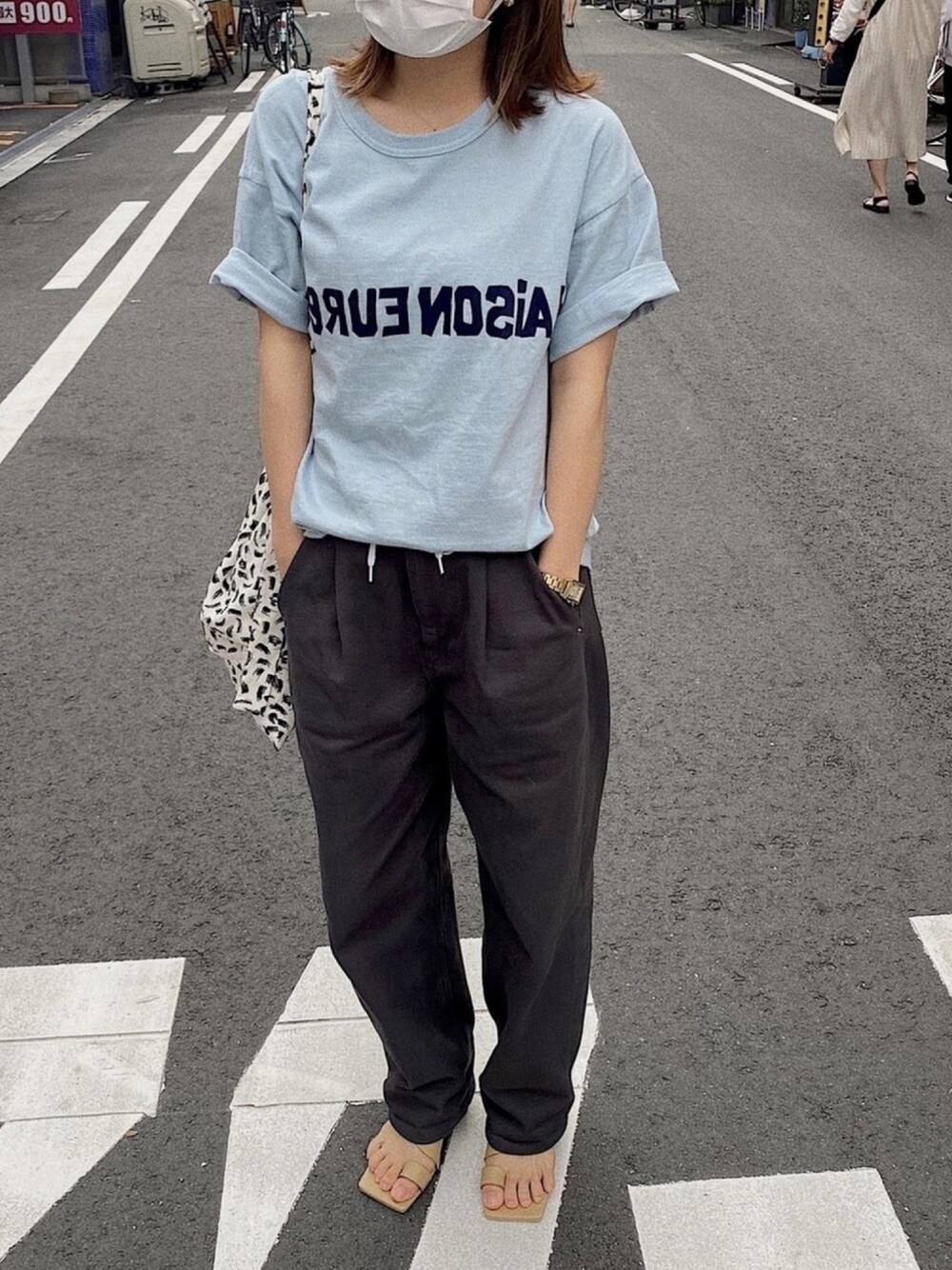 夏はTシャツスタイル多くなります〜 エウレカのTシャツお気に入り〜 fork&spoonのパンツ、程良くゆるく履けるテーパードのシルエットが気に入りました^_^ 爪塗ってないのにサンダル履いてしまいました。